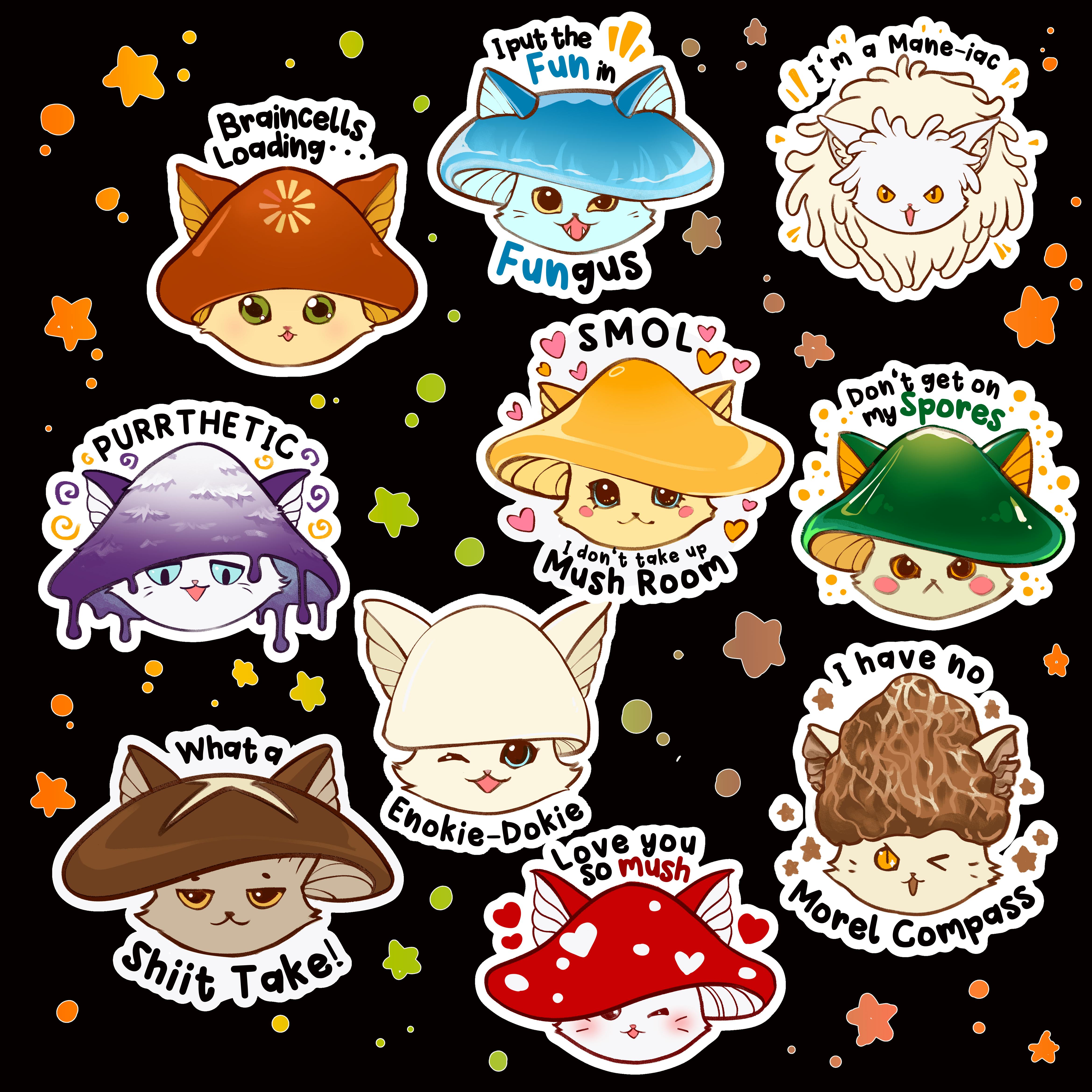 Remember that everyone gets one pack of emote stickers for free, but you can buy extra packs in the add-ons/pre-order shop. The edible mushrooms are a new sticker pack that are also available in the add-ons/pre-order shop.