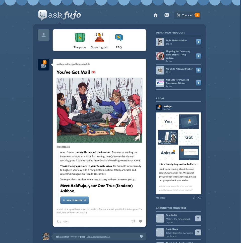 AskFujo is an ~experience~, a love letter to everything that makes the web great, for fandom and beyond. And that is: human connection.