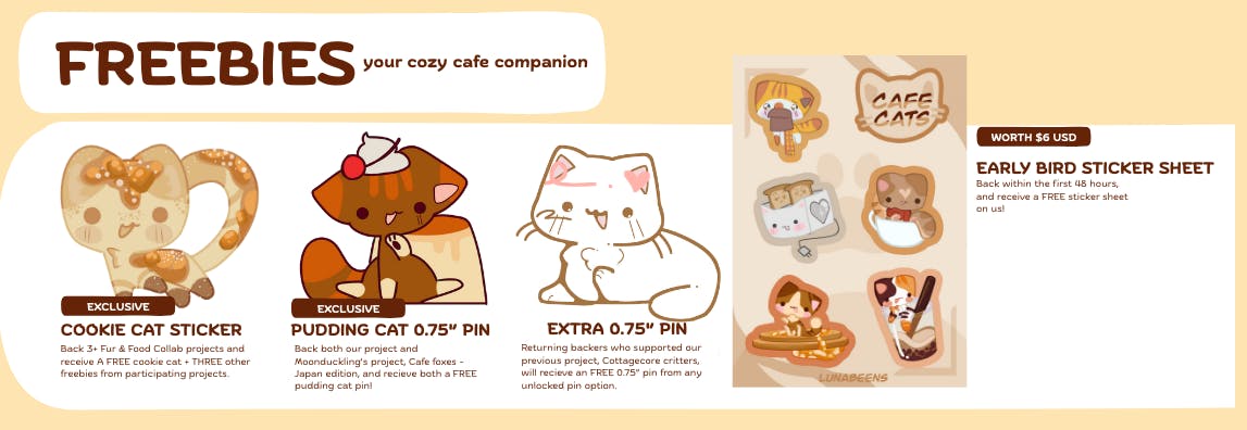 you'll also be able to purchase a cottagecore critters enamel pin (from our last campaign) as an addon! returning backers will get an extra mini pin of their choice added to their orders at no cost.