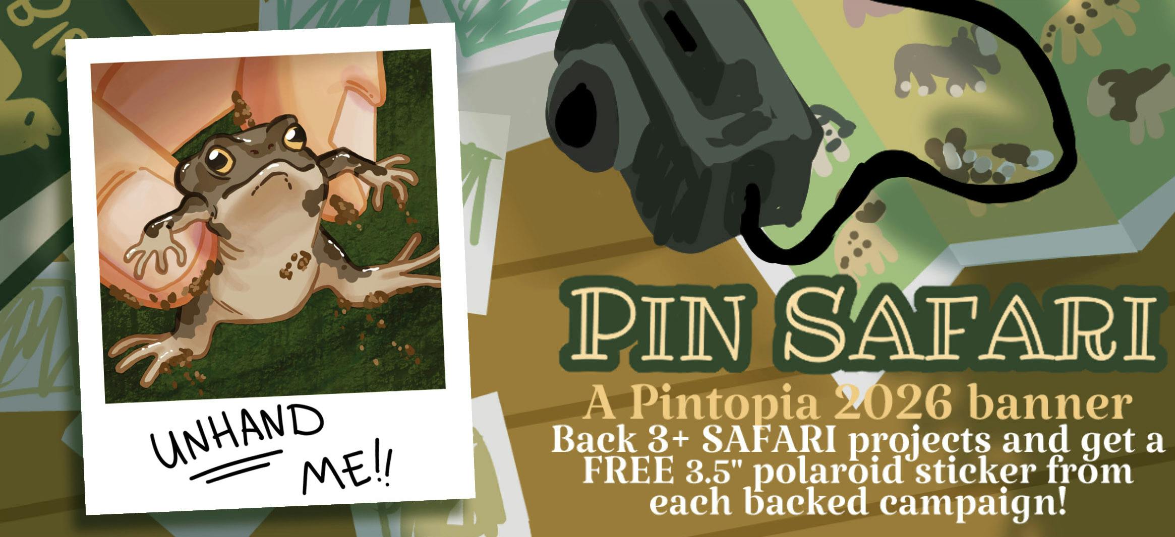 During Pintopia we have several special sub Banners where you can get something extra! Frogtastic Frogs #2 is in the banner Pin Safari and if you back 3+ projects in that banner you will receive an exclusive Polaroid vinyl sticker from each backed project. Frogtastic Frogs #2 polaroid has a very disgruntled frog on it!