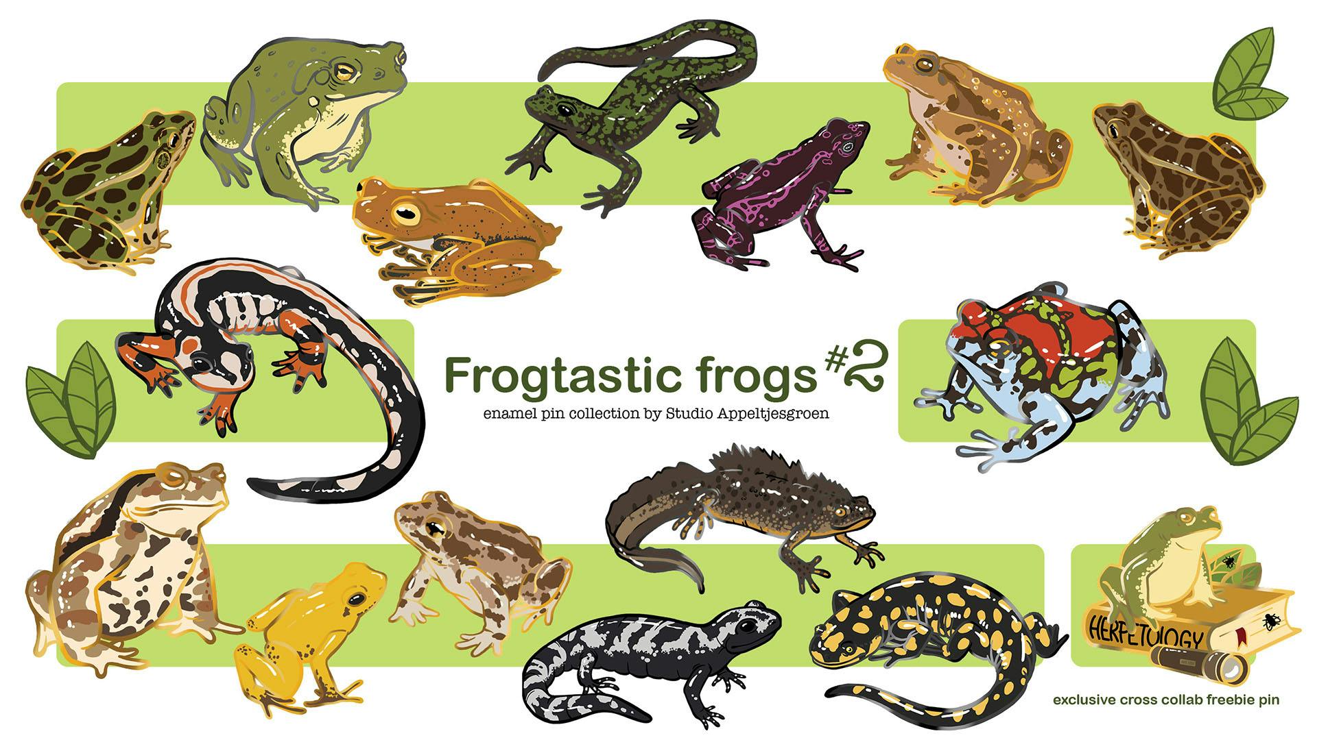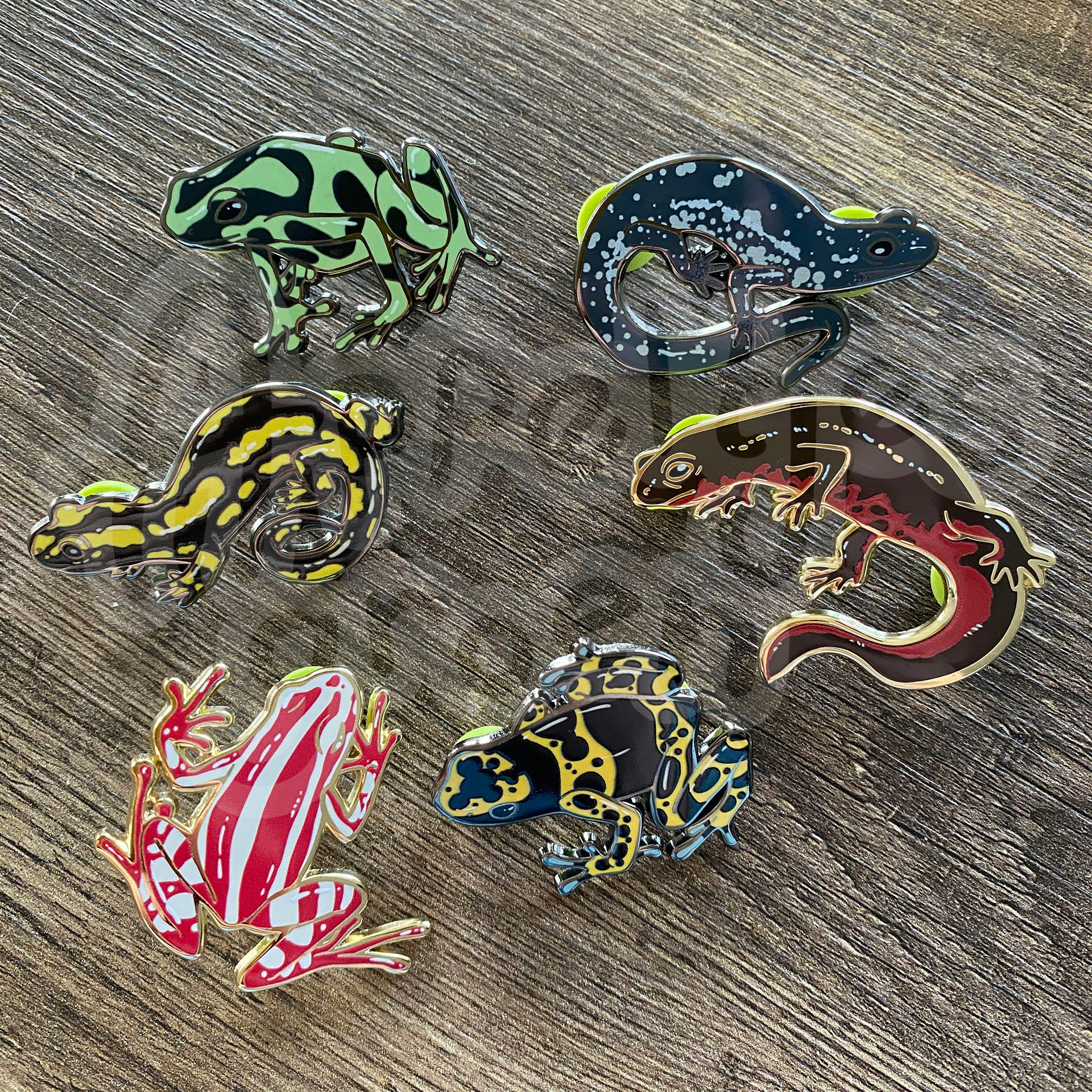 β’ Previous Frogtastic Frogs 1 and Poison dart frog & Salamander enamel pins are all available as add-ons! So you can make your collection complete while backing this project.