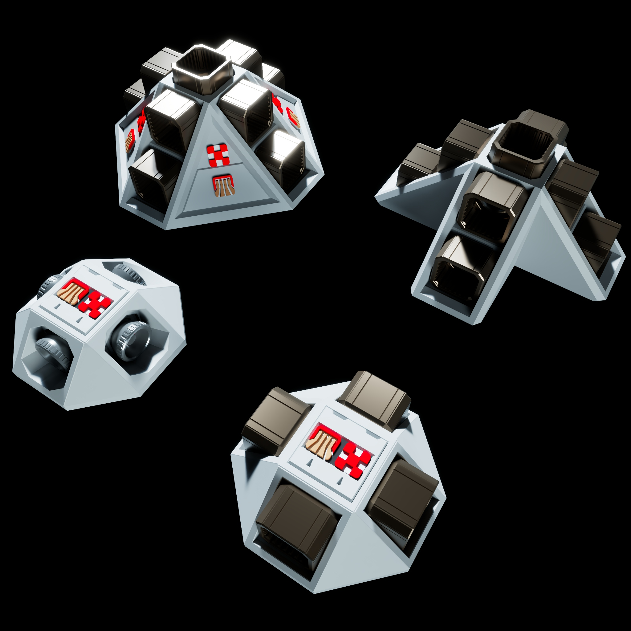 First, we are releasing a new pack of 24 new RCS variant STL files compatible with every vessel in the Aesir Fleet (plus Typhon, the Hyperion Sphere, among other 2nd Dynasty ship variants). What does RCS stand for? Reaction Control System, otherwise known as manoeuvring thrusters - used to orient ships and make minor course corrections in micro gravity.