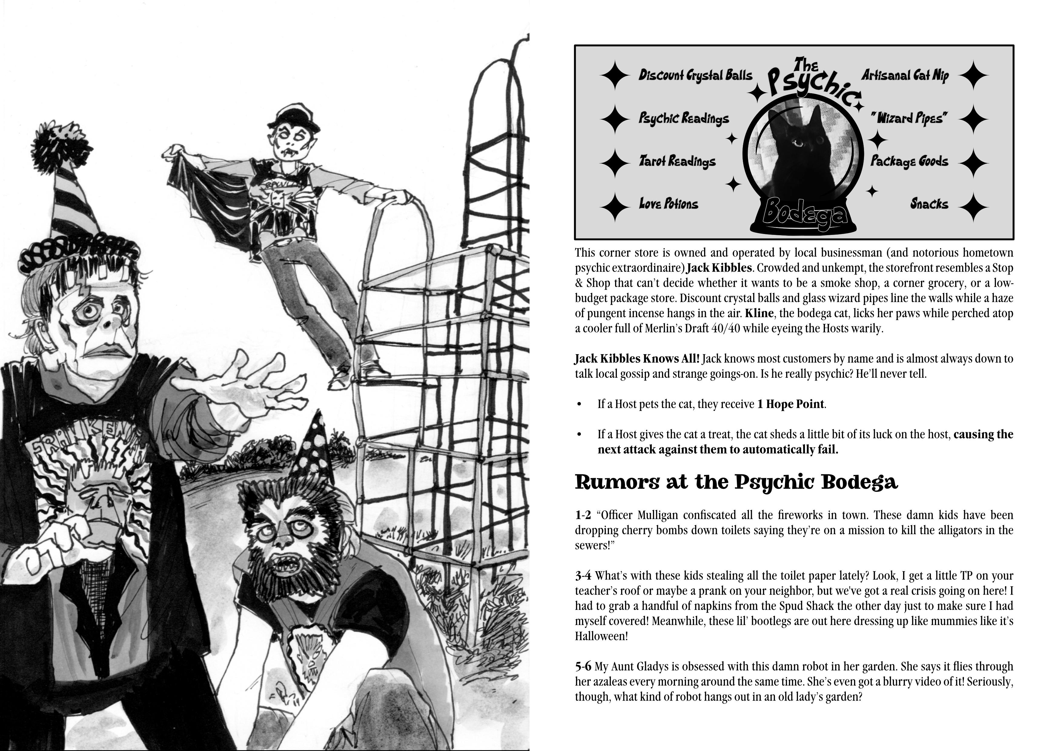 Under the glow of a relentless full moon, you and your crew of public access heroes will use a simple d6-pool system to quickly get into the action. Time is of the essence as you race to uncover Fairhaven's darkest secrets and protect your show from being canceled!"