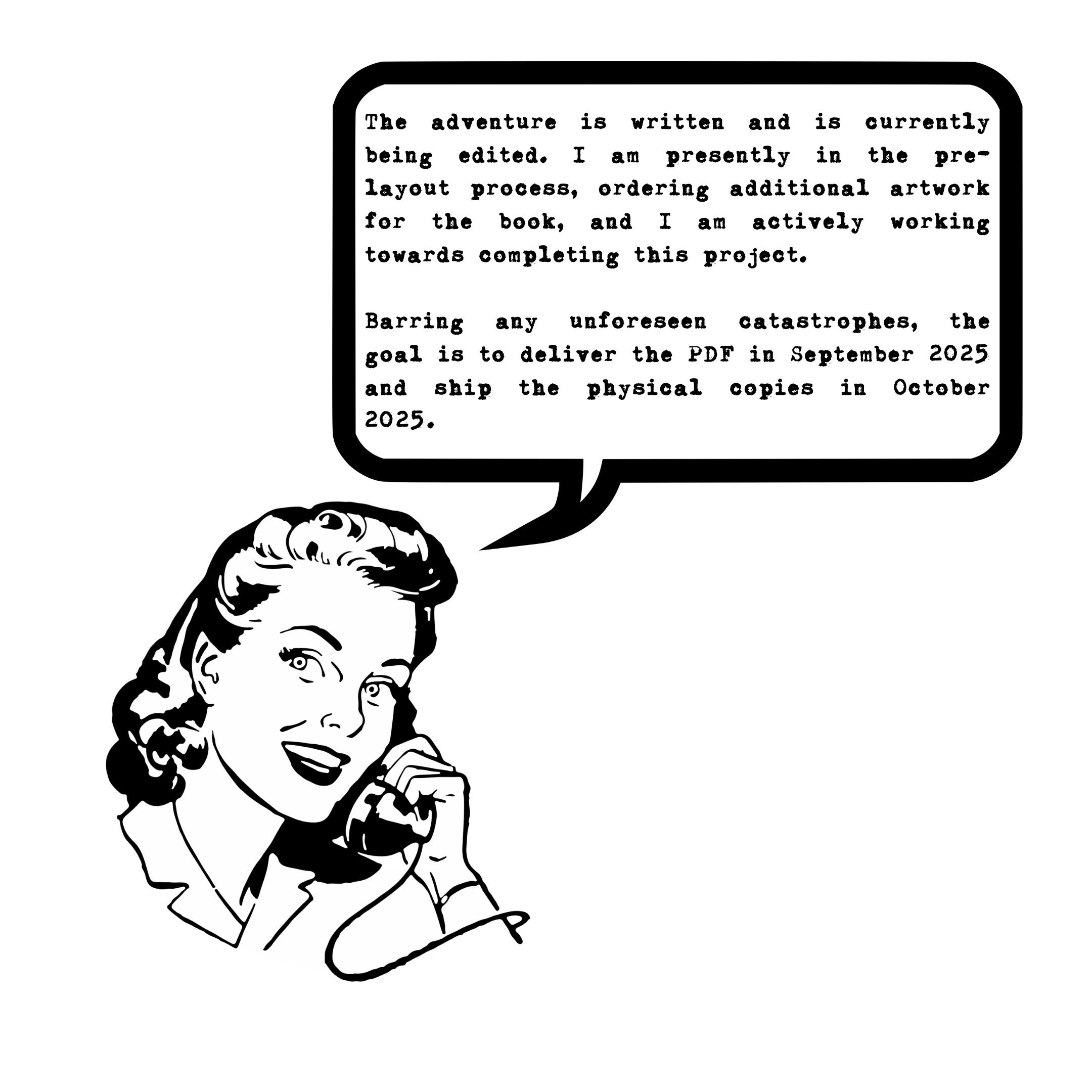 Ham & Egg Publishing will fulfill the PDF edition via DriveThru RPG. It will be checked on various screen readers to ensure accessibility, be fully inked, and be printer-friendly.