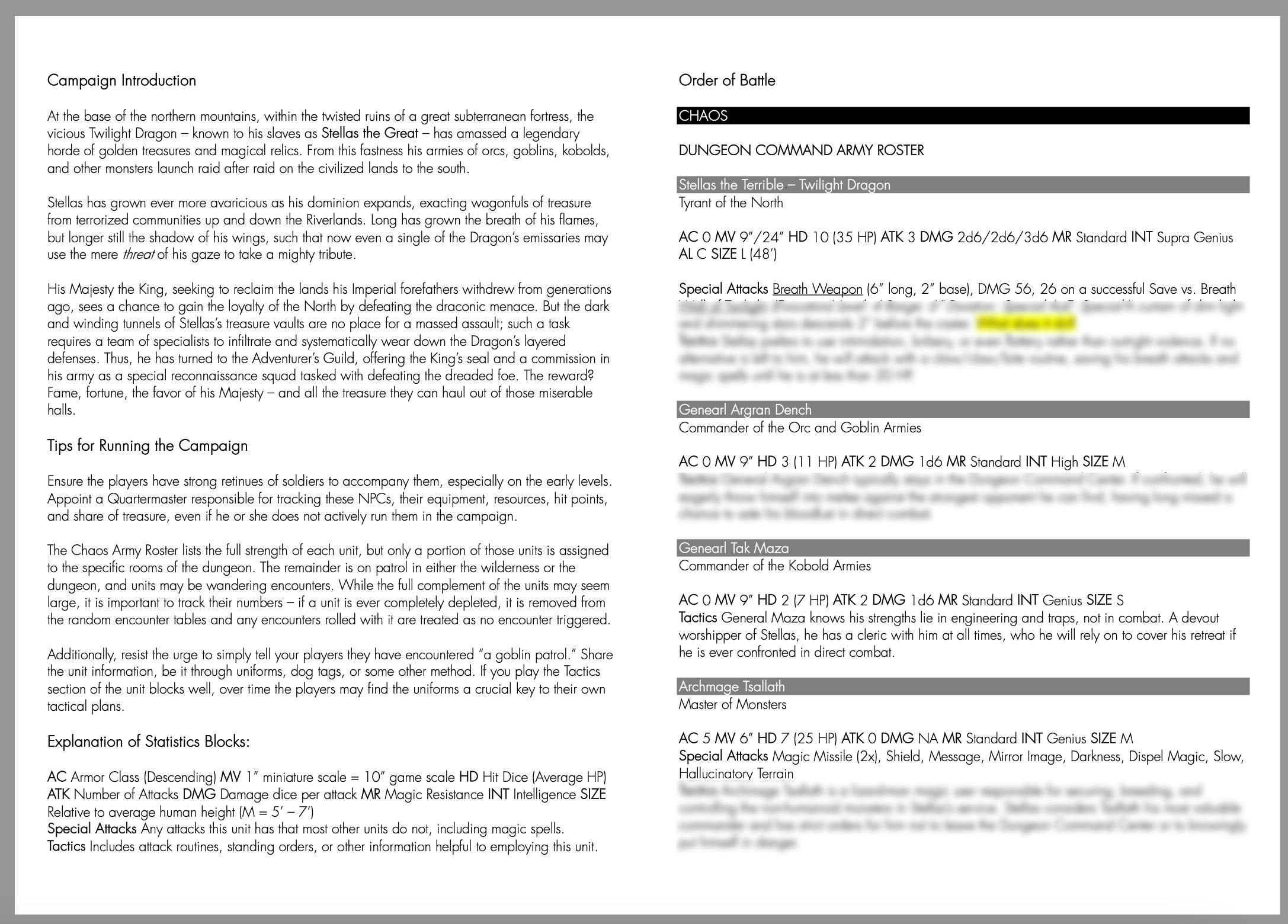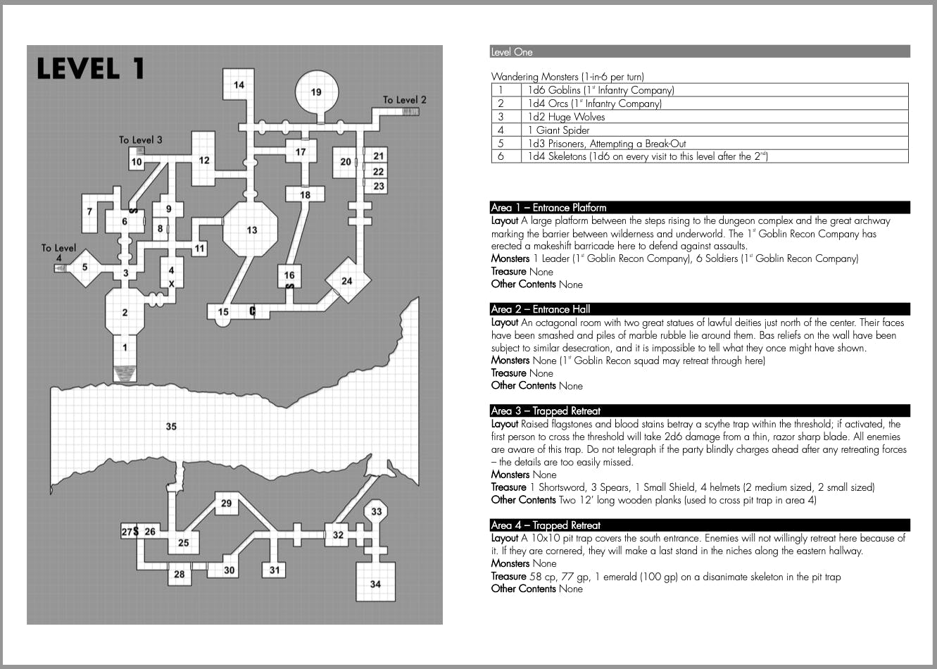 When Gary Gygax and Dave Arneson released their original version of Dungeons & Dragons, they subtitled it "Rules for Fantastic Medieval Wargames Campaigns." Treasure Vaults of the Twilight Dragon is a return to this kind of Dungeons and Dragons - or, perhaps more accurately, a peek into what RPG modules could have been if they had clung more closely to their origins. It is unapologetically a hack-and-slash funhouse dungeon, meant to be played as a wargame-style campaign while still incorporating the unique features of a role-playing game.