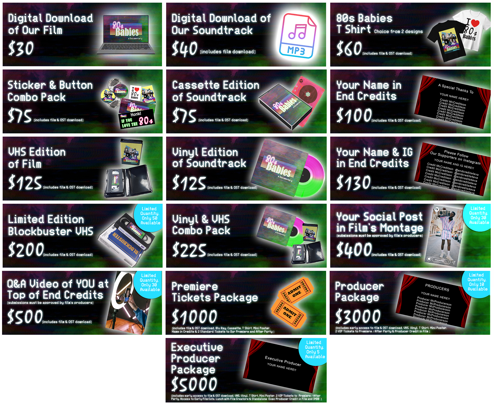 The further we surpass our initial campaign goal, the better our film will be! Let's go above and beyond and make 80s Babies the masterpiece it is destined to become!!