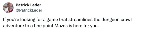 MAZES is a return to the classic sword & sorcery dungeon crawler with award-winning, elegantly simple rules that put you right into the action. ๐ฅWant to hear what other people are saying? Click here