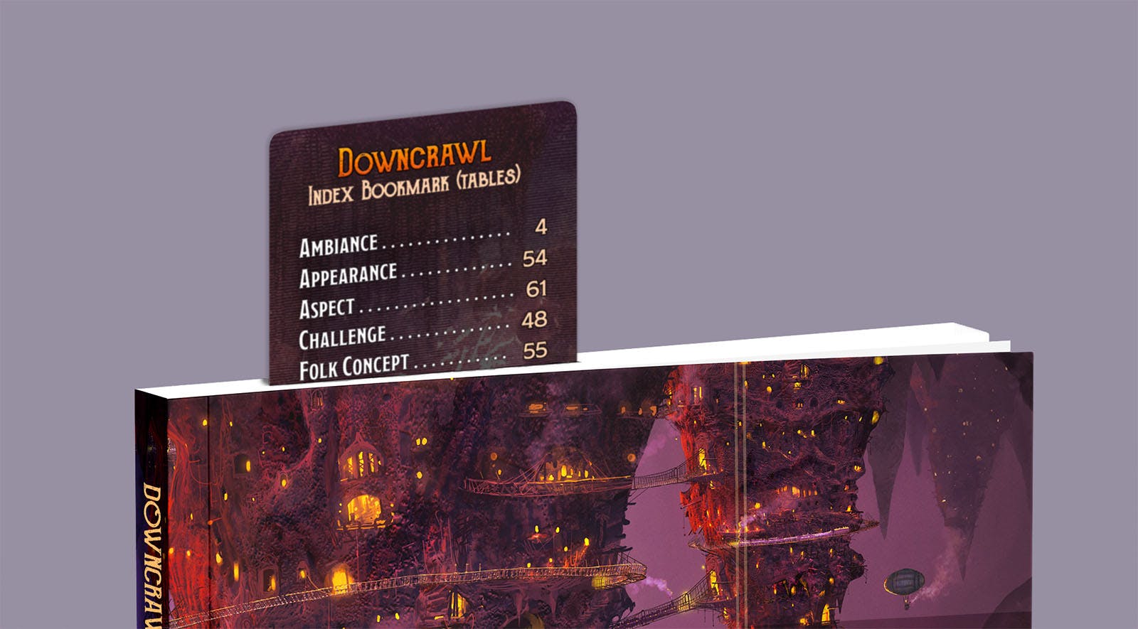 The Deck puts Downcrawl's creative prompts right at your fingertips. It's a great aid to creative play, removing the friction of reaching for the dice and cracking open the rulebook to find the right table. It's included at the $45 pledge level and up.