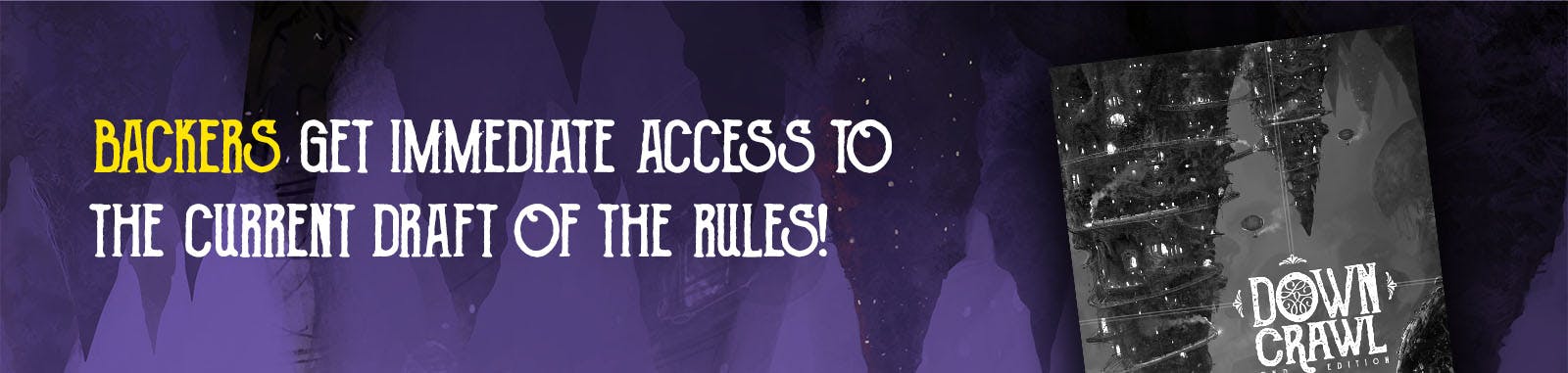 If you pledge at a level that includes the Downcrawl Deck, you'll get the Downcrawl Worlds rules for free. (PDF format; includes printable player handouts.)