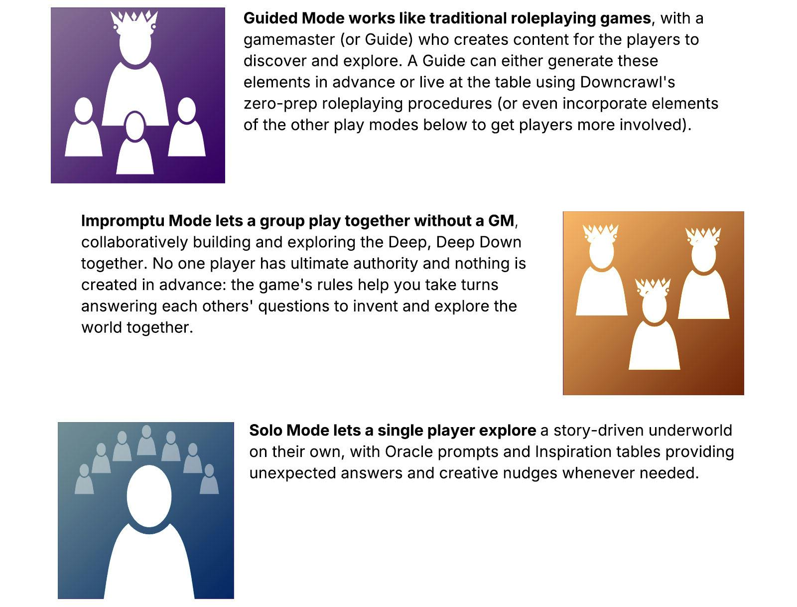 Revised and expanded from the original 2017 edition, Downcrawl 2E features new rule options for solo or collaborative play, and an optional deck of prompt cards that makes sparking weird underworld adventures easier than ever.
