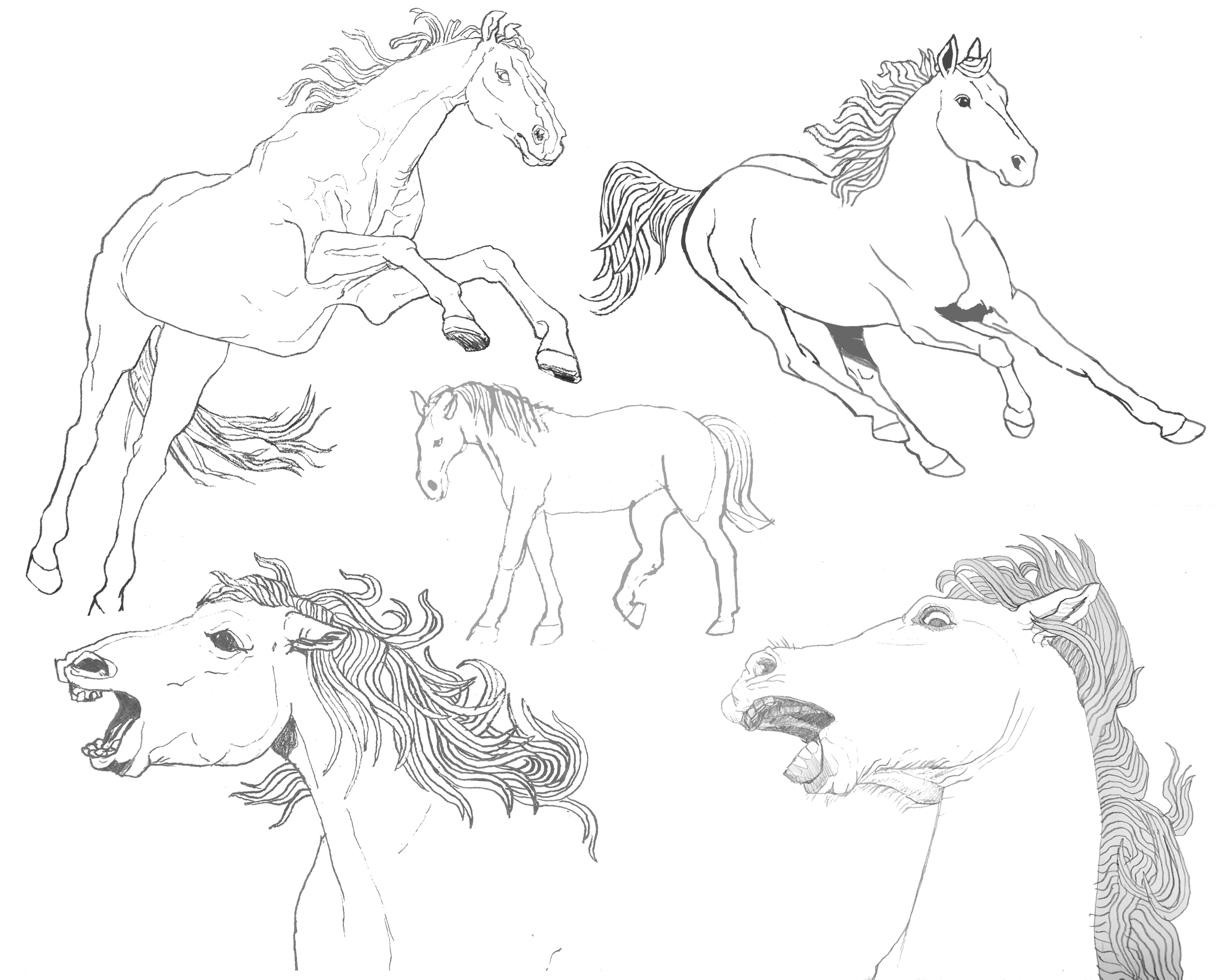 pencil/digitalsketches of horses in various poses