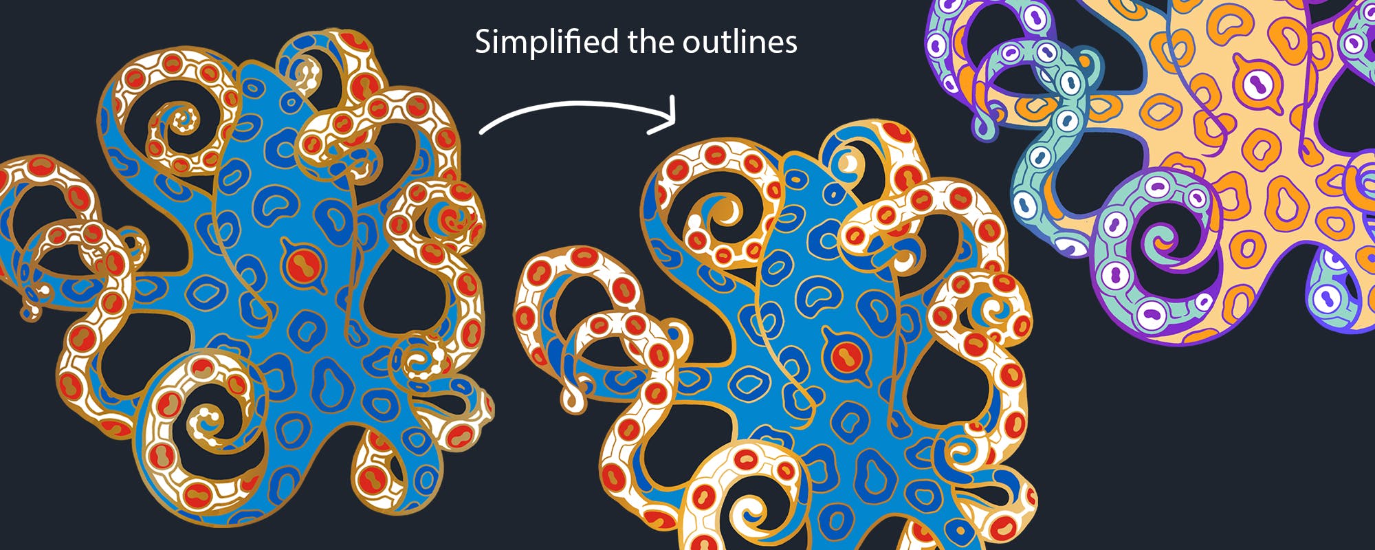 I haven't had to add screenprint to the Octopus, instead I've managed to clean up the outlines and create larger spaces which hopefully can all be filled with enamel. I think this design also looks better post-edit so I'm looking on the bright side here lol!