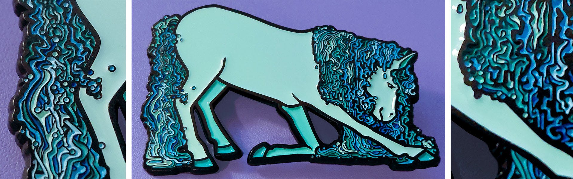 Now the Bad News: delays. 😠I have been working with the same manufacturer who made my Horses of the Apocalypse pins on the Warped Ocean collection from January to March and all seemed well until last week when they unexpectedly told me they can't produce these pins at this level of detail at all and cancelled my order, even though they already made moulds! 😱