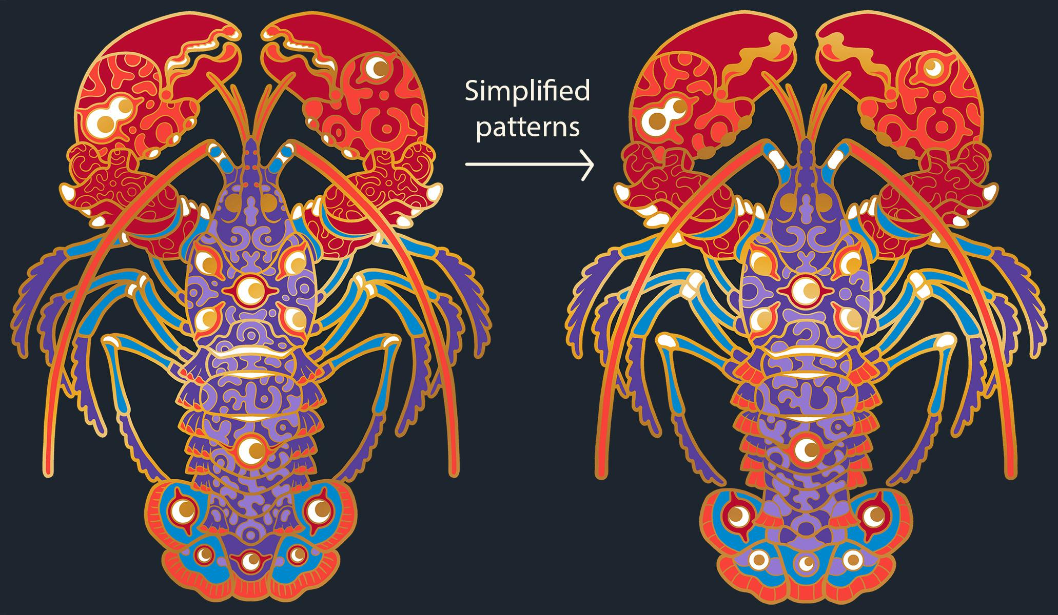 The Lobster: The patterns and eyes on the Lobsters body came out way too small in the test mould and even if filled I suspected they would have a high error rate so I decided to simplify those shapes somewhat.