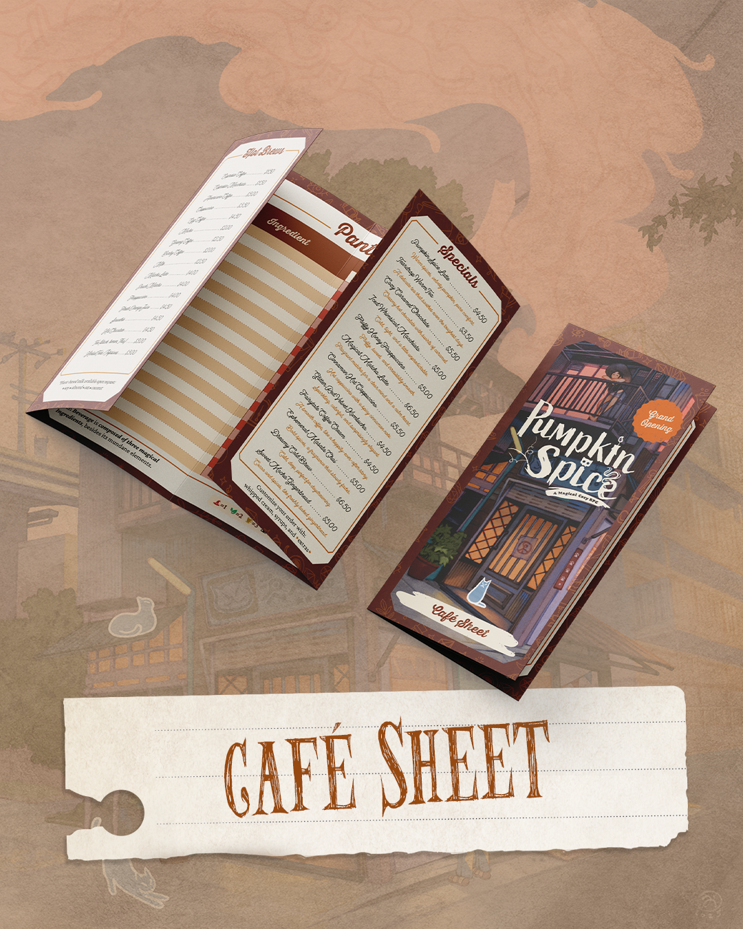 Thank you so much for chatting with us and the authors of Pumpkin Spice on Thursday. If you didn't manage to catch it live, you can see the livestream on our YouTube channel! We talked about the game mechanics, our inspirations, and obviously we shared some pictures of the game accessories, like the fabulous Café Sheet. Remember you can download this, together with the complete quickstart (which has an introductiory adventure) and the character sheet, just by following the project.