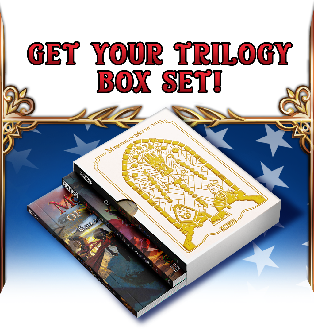 Note: All art and text on this page and in the books is completely handcrafted; Action Fiction doesn't use AI/LLMs for any of its creative endeavors. All the glory of the Monsters of Murka series is unsullied by filthy robot hands.