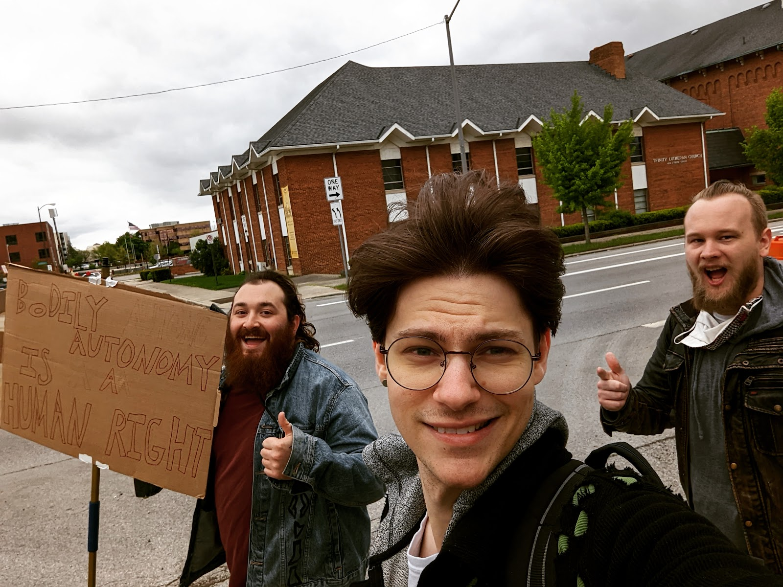 And here we are on our way to a protest in our hometown of Columbus, Ohio, circa 2022. Unfortunately, this is one of the earliest photos I have of the three of us, because we’re notoriously bad at taking group photos, and have a tendency to take ... less serious photos.