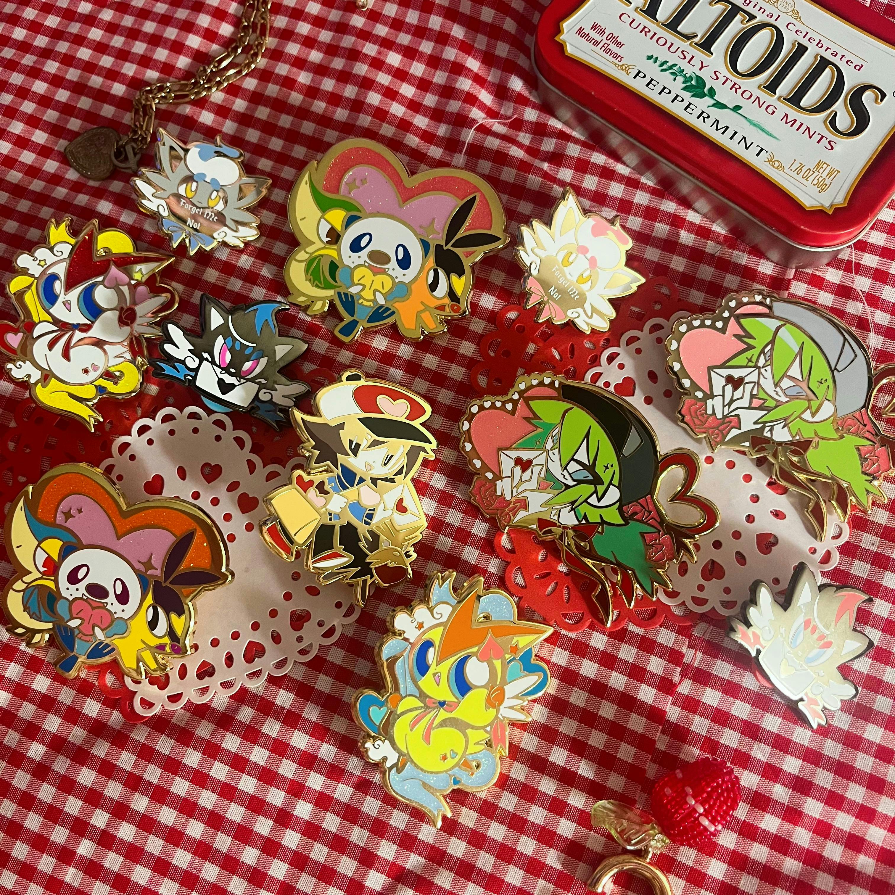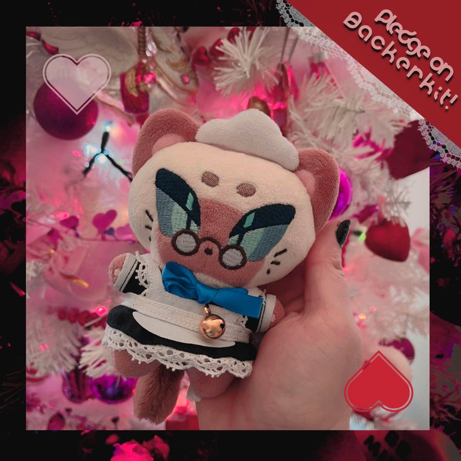 We are a luxurious set of plush and enamel pin maids, here to take utmost care! This set features two beautiful 5" plush keychains (each with a fabric strap and round carabiner clasp) and four lovely painted enamel pins. ♡