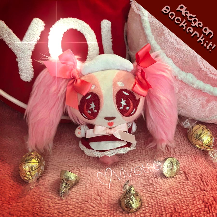 Vivette is the fluffy, kind, and soft-spoken member of the café who is sure to dote on you! Her weakness is that she is a bit of a crybaby, so watch out for the tears! She comes in 5" plush keychain and 1.75" painted enamel pin forms, as well!