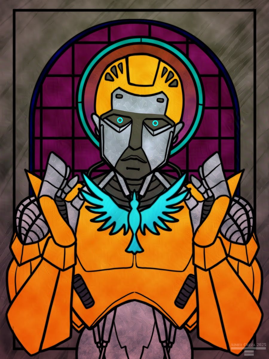 Oh right. I couldn't *just* draw Inix as a stained glass window, could I?