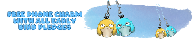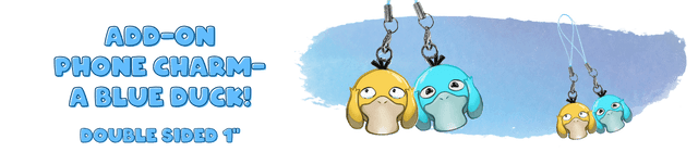 Early bird pledges will receive a 1" double sided phone charm featuring the beloved blue (and yellow) duck! This will be available as an add-on for anyone that misses early bird pledges.