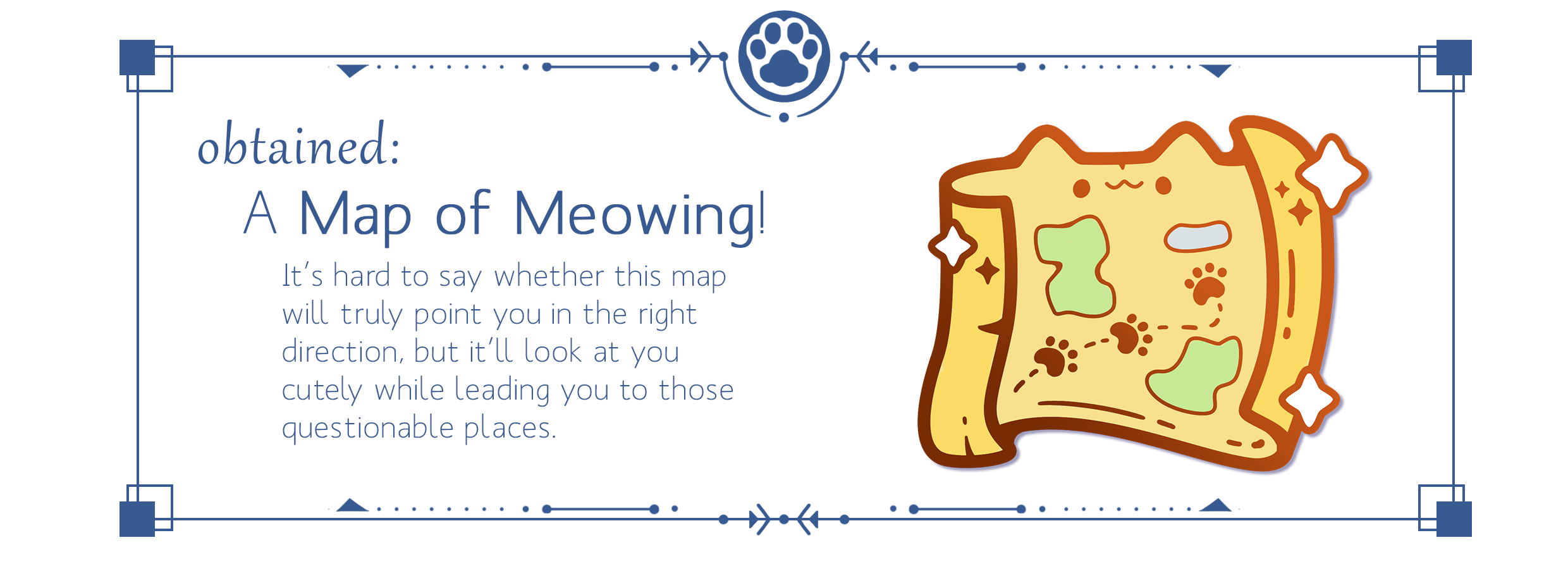 Well, that's that, it seems. The new adventurers pick up their new map (which promptly meows at them), and they head through the gate that closes behind them with a thunk of finality.