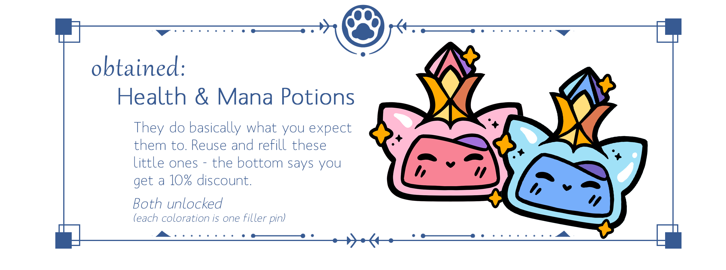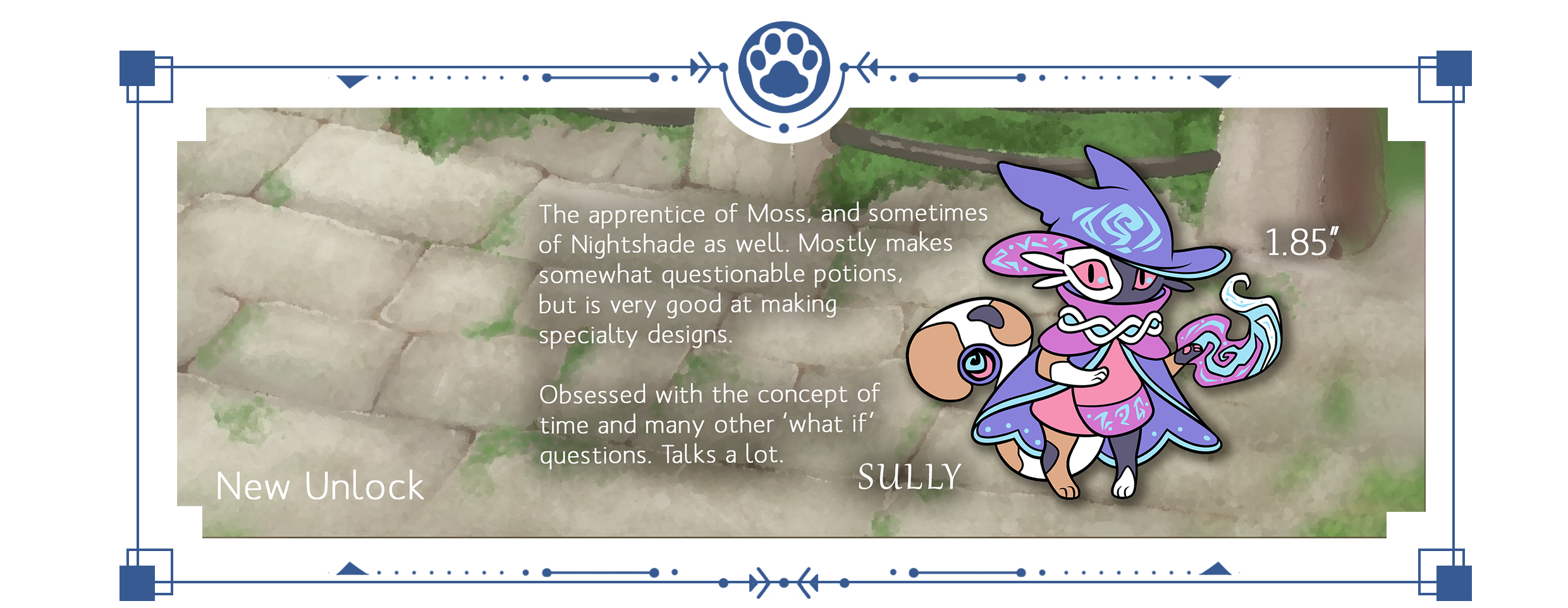 "Adventurers, may I interrupt." Those unoccupied by the shiny hunt look back to find an eccentrically clad cat standing on top of the fence which was still intact. "My name is Sully, the apprentice alchemist with the Merchant's Guild. I've been sent by Moss and Nightshade with your order, along with some mana and health potions for your journey."