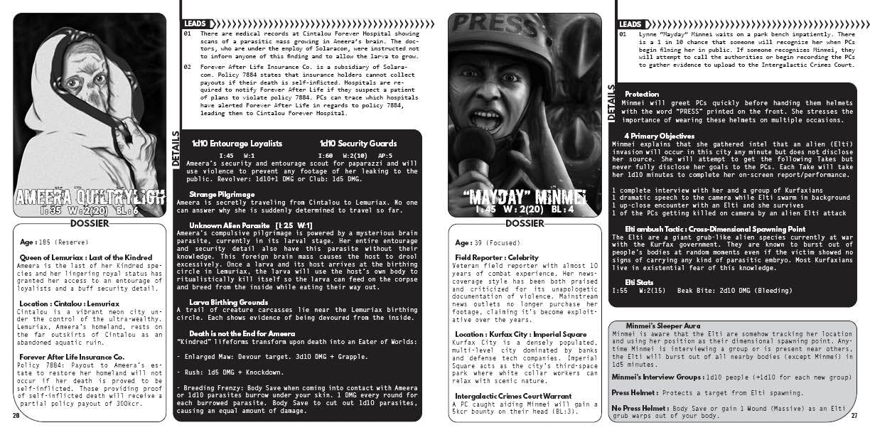 Alex completed all of the NPC portraits and they look amazing! Editing is completed and I'm currently finalizing the layout and tweaking the copy as I re-read and re-read the module. Here are a few sample pages.