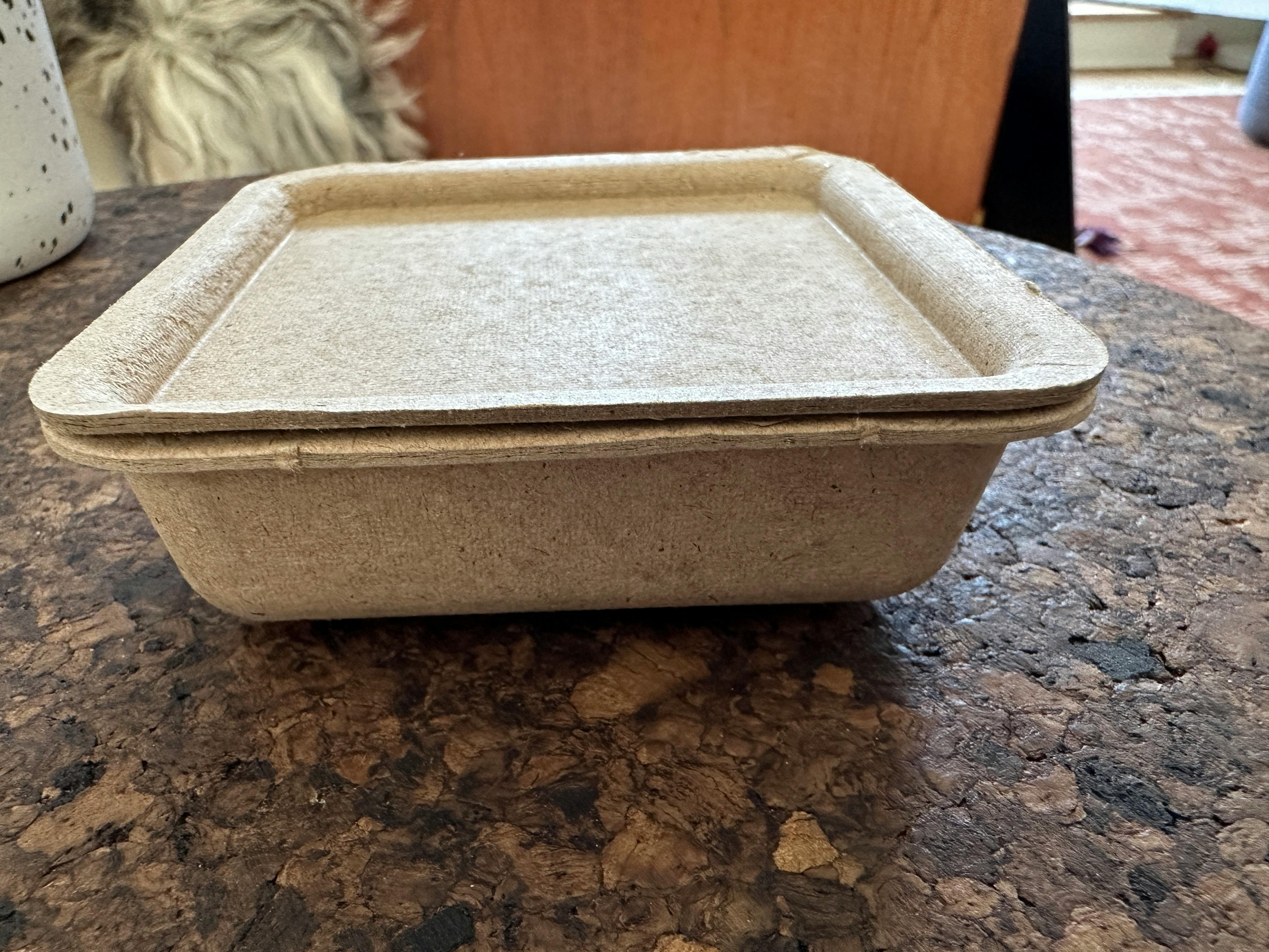 Basically, there was a miscommunication with the factory and the trays were created using a different material than we specified: they made something out of thick cardboard rather than the thin bagasse fiber we needed for them to seal properly.