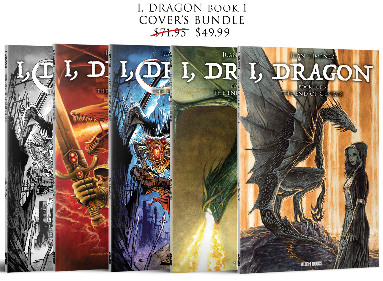 "I, DRAGON", the last creation of the late Juan Giménez (The Metabarons, Heavy Metal) is getting published for the first time in English! CAMPAIGN EXCLUSIVE ITEM: a variant cover by Salvador Sanz!