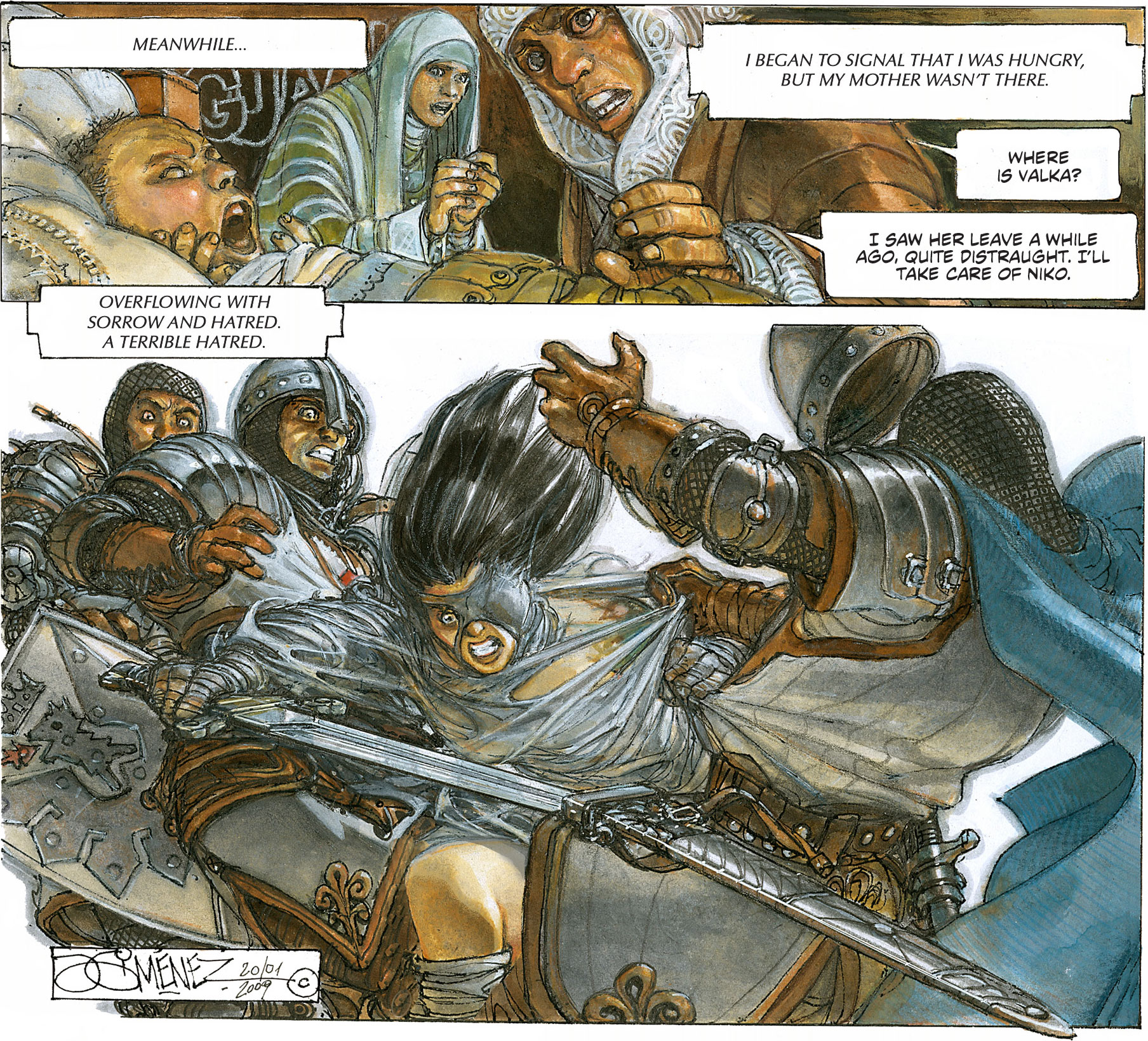 After working on sci-fi for so long, Giménez desired to take up some personal projects. And that’s how I, Dragon, a medieval fantasy, came to be. It was published in Spanish and French between 2011 and 2016.