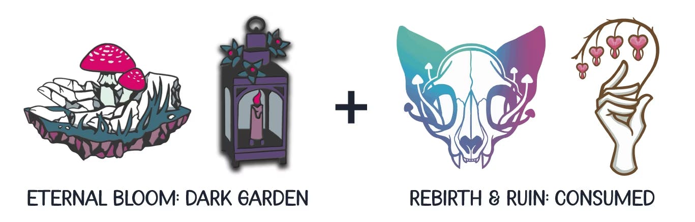 This year, there are also banner incentives! Both of our projects fall under the Bloom & Burrow banner for Pintopia! If you back 3+ projects from it, you get an additional free mini pin from each artist you back!