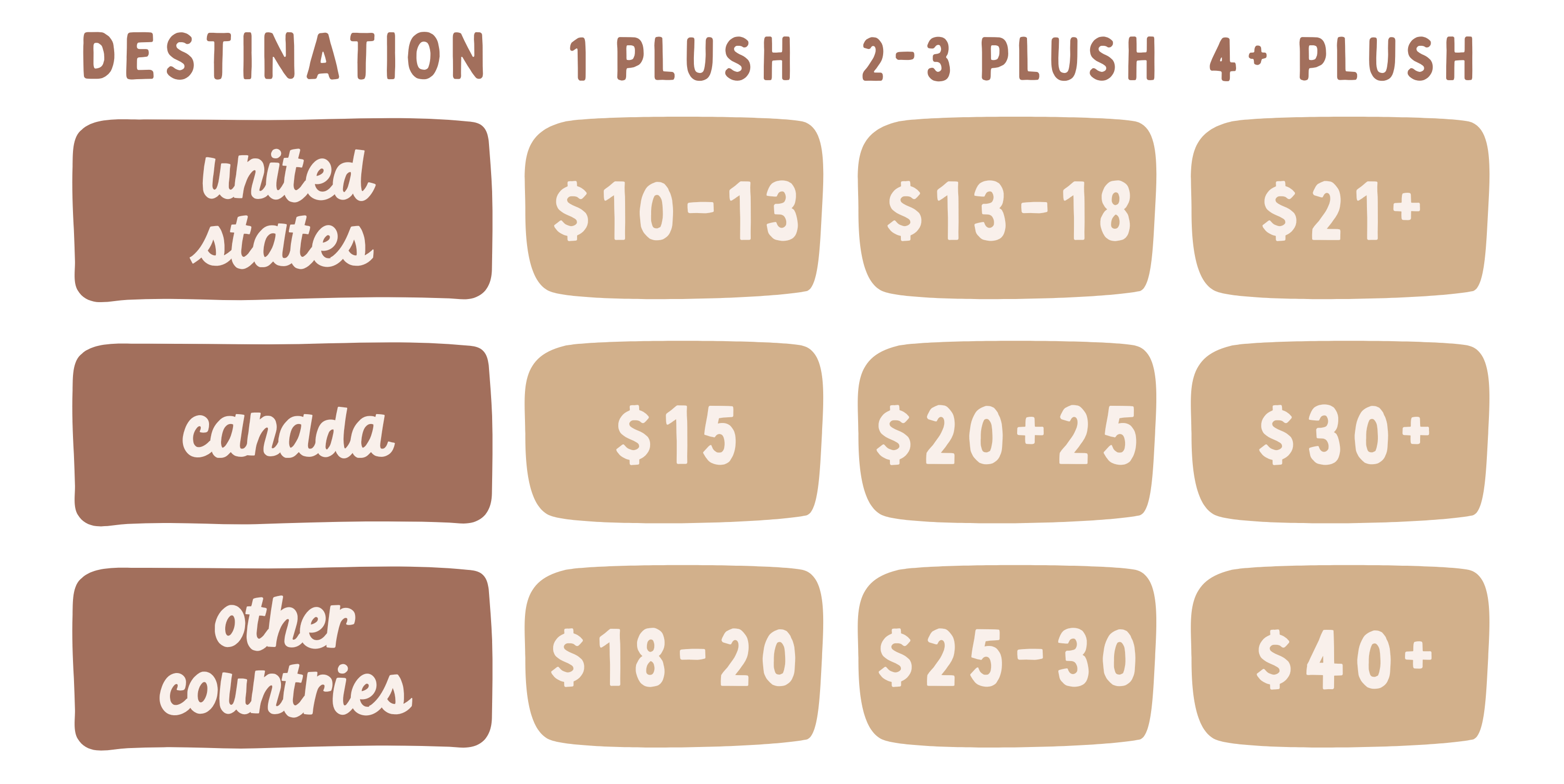 Since shipping is constantly fluctuating, we decided to collect shipping AFTER this campaign ends. This way, we can ensure that shipping costs are calculating correctly! Below are an ESTIMATE on what to expect to pay for shipping. Please note that this estimates may change but we will do our best to match them!