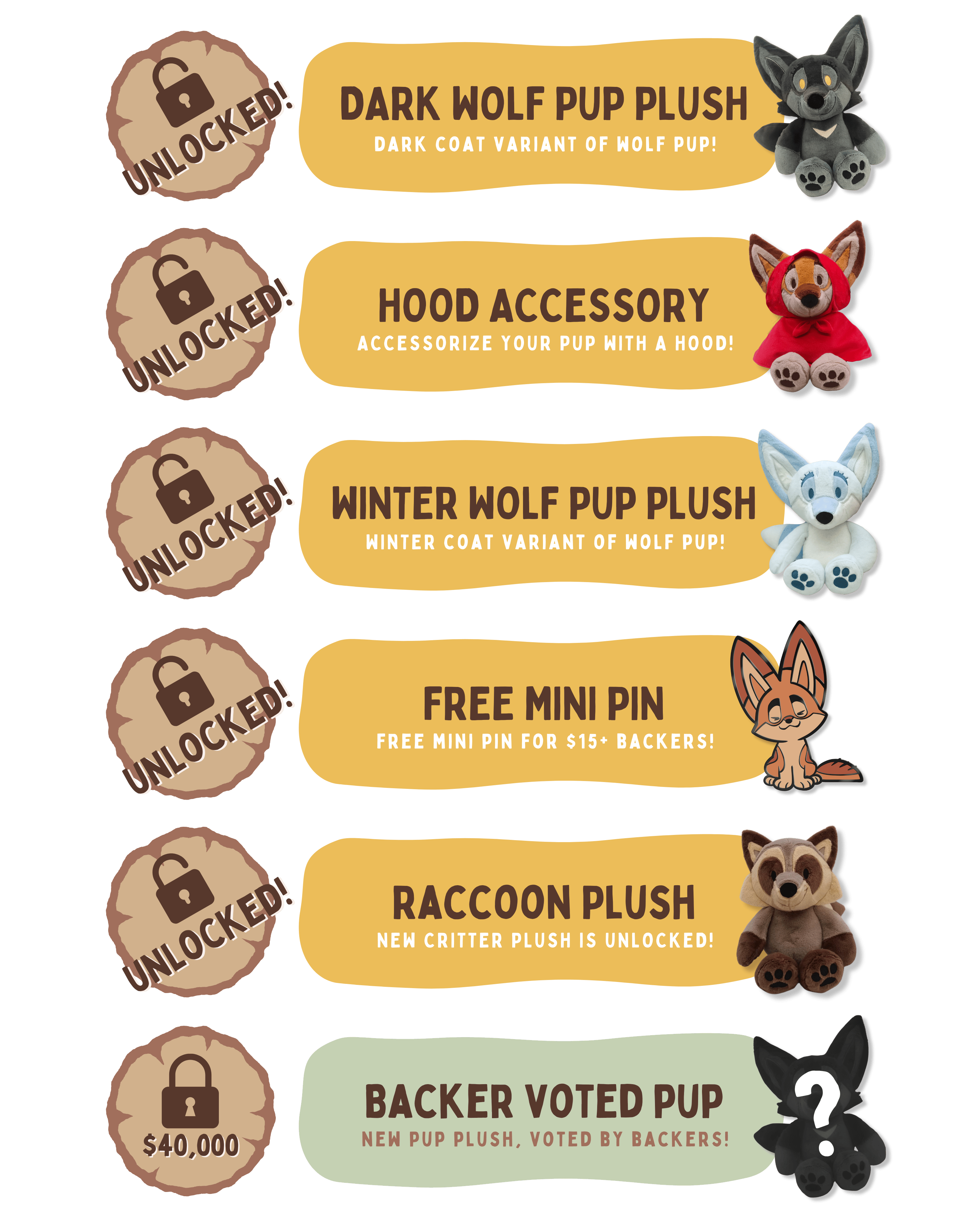 When the campaign ends, you will receive a survey that will ask you the exact plush toy(s) you want! Keep in mind that you can only select from plush toys that are unlocked, so be sure to check the stretch goal status! :)