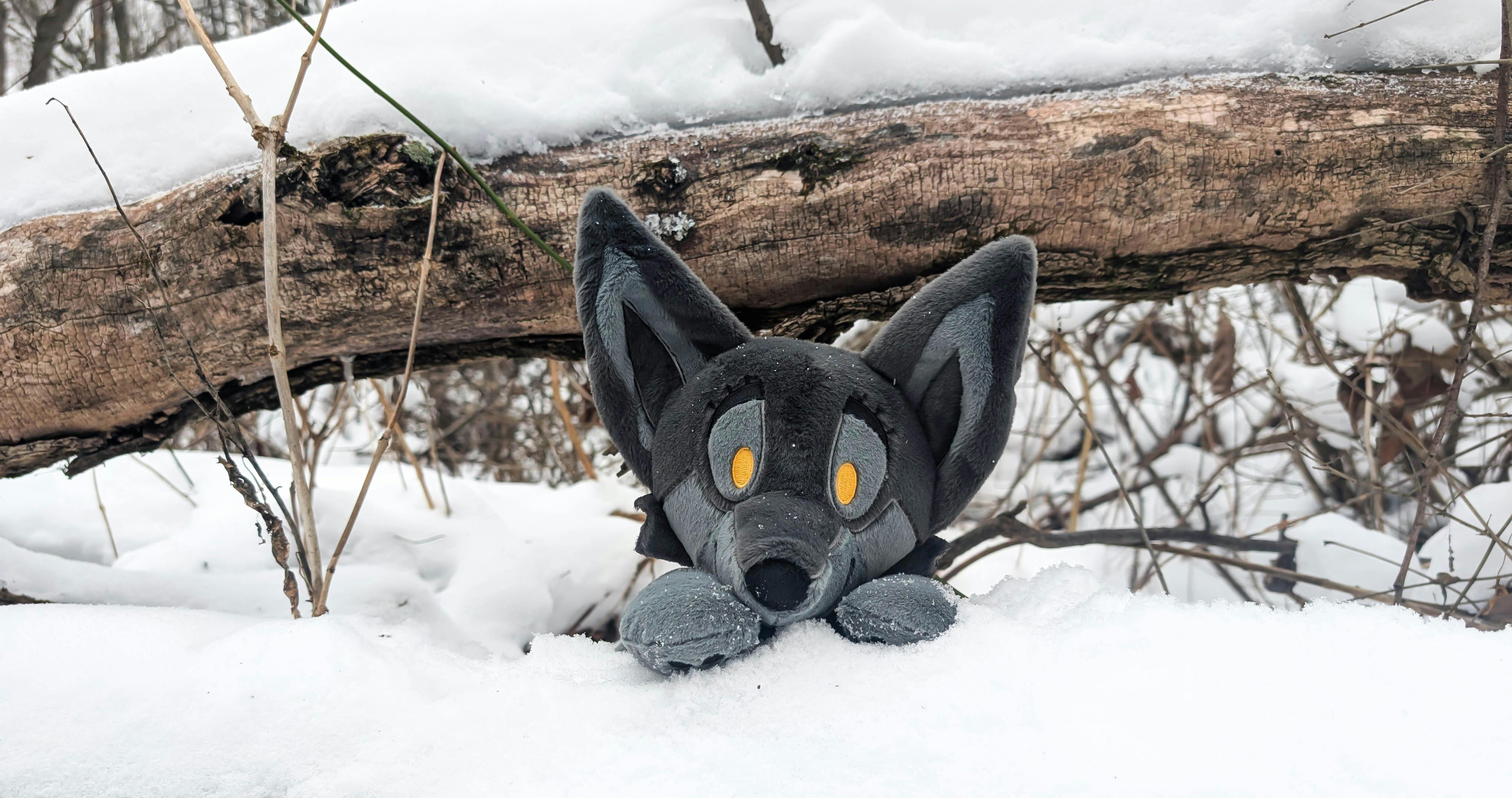 When designing this plush, I wanted to capture the warmth of Wolf Pup. I felt that a soft, gentle expression would help capture her charm, while the floppy body and simple limbs would bring a nostalgic feeling from a childhood plush. The ears are posable which allows you to customize the "expression" of them, which includes making them look floppy!