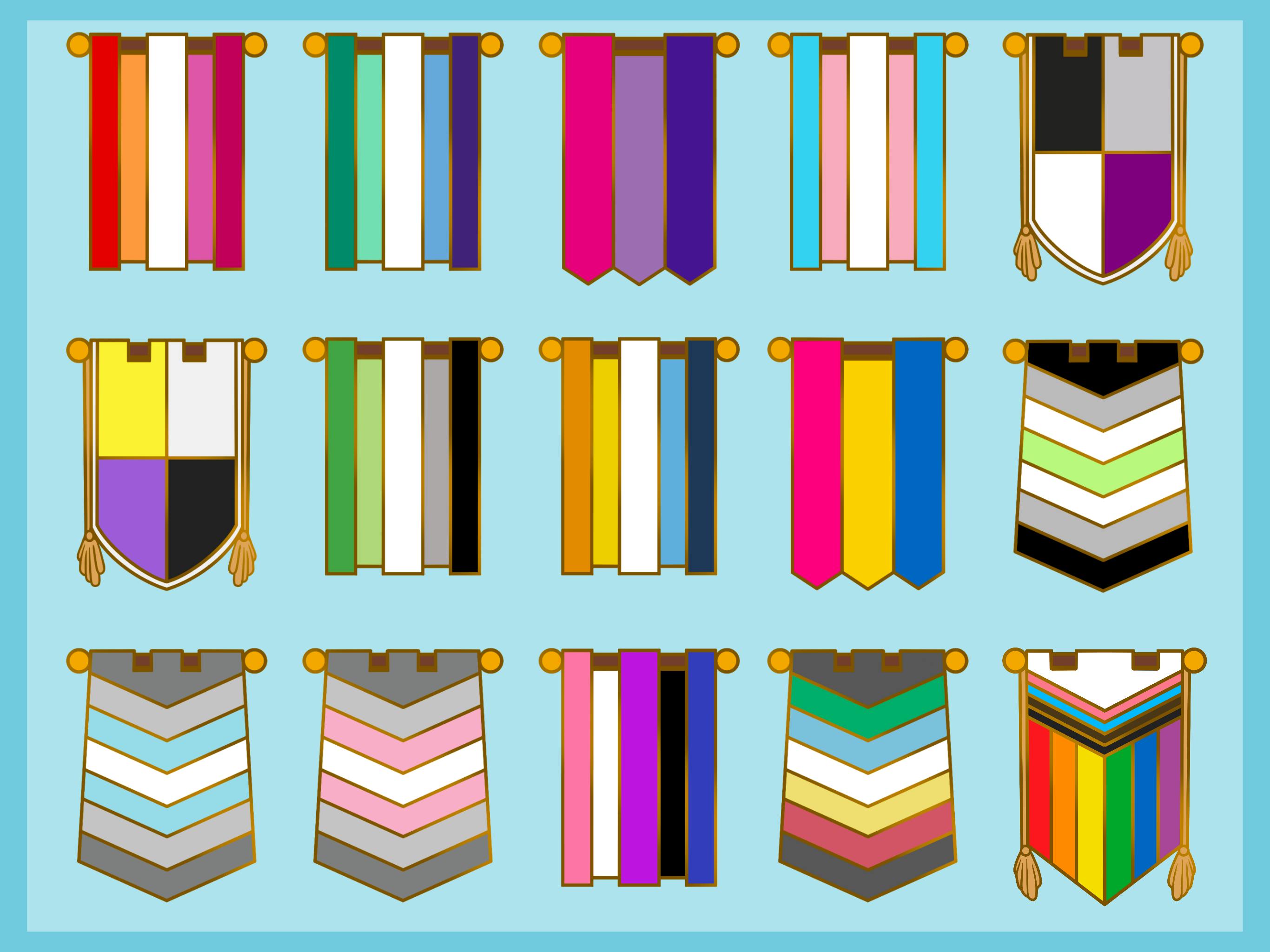 New Pin! It was brought to my attention that the Disability Pride Flag has the same number of stripes as the Demiboy, Demigirl, and Agender flags, so I could reuse the design for it! This flag will be available as a mini pin for everyone who pledged for or added a mini pin to their order. It will also be available as an add-on in the survey!