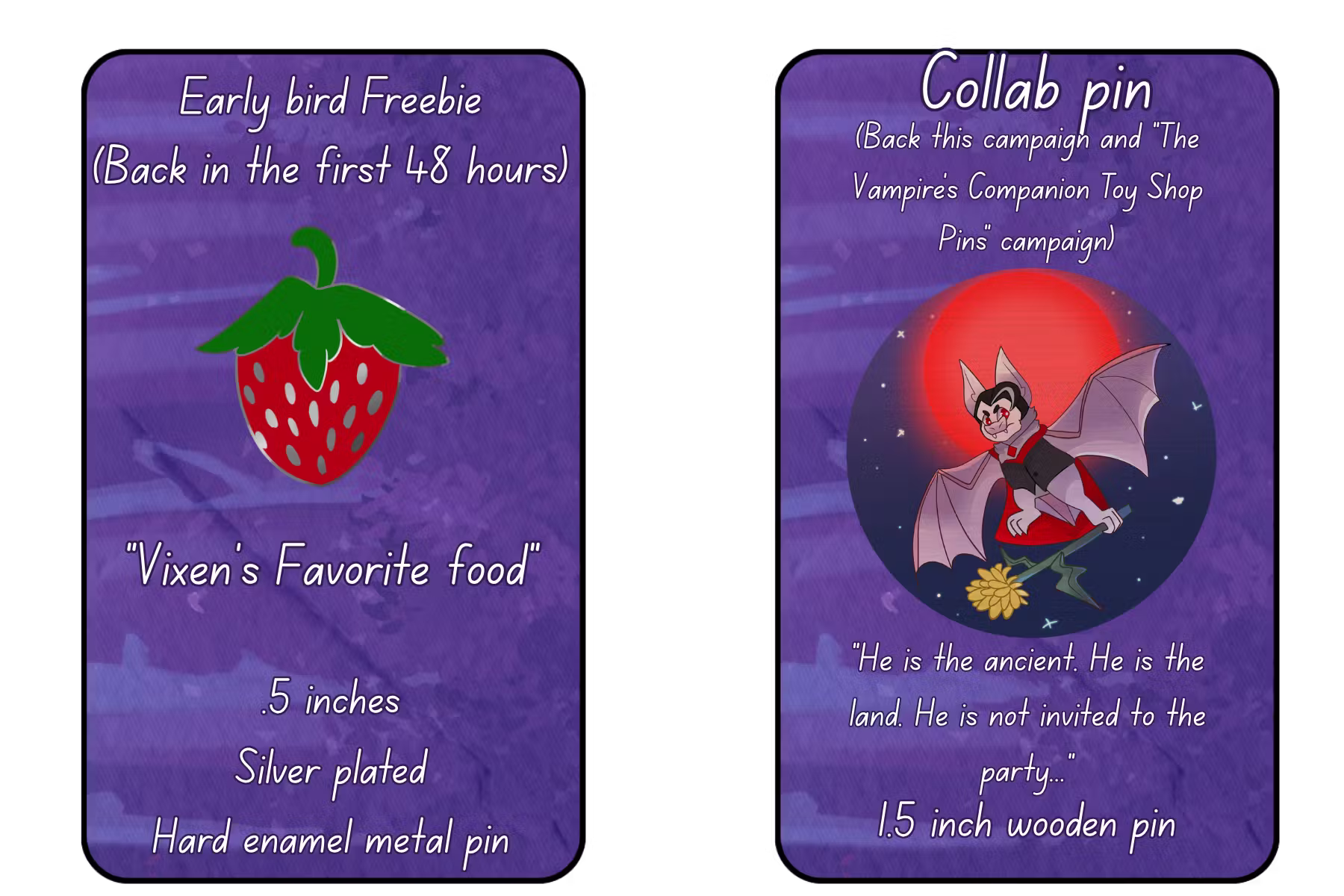 Cross collab "Legally distinct Vampire (bat)" wooden pin- Pledge to both this campaign and the collab campaign to receive the wooden pin from both of us.