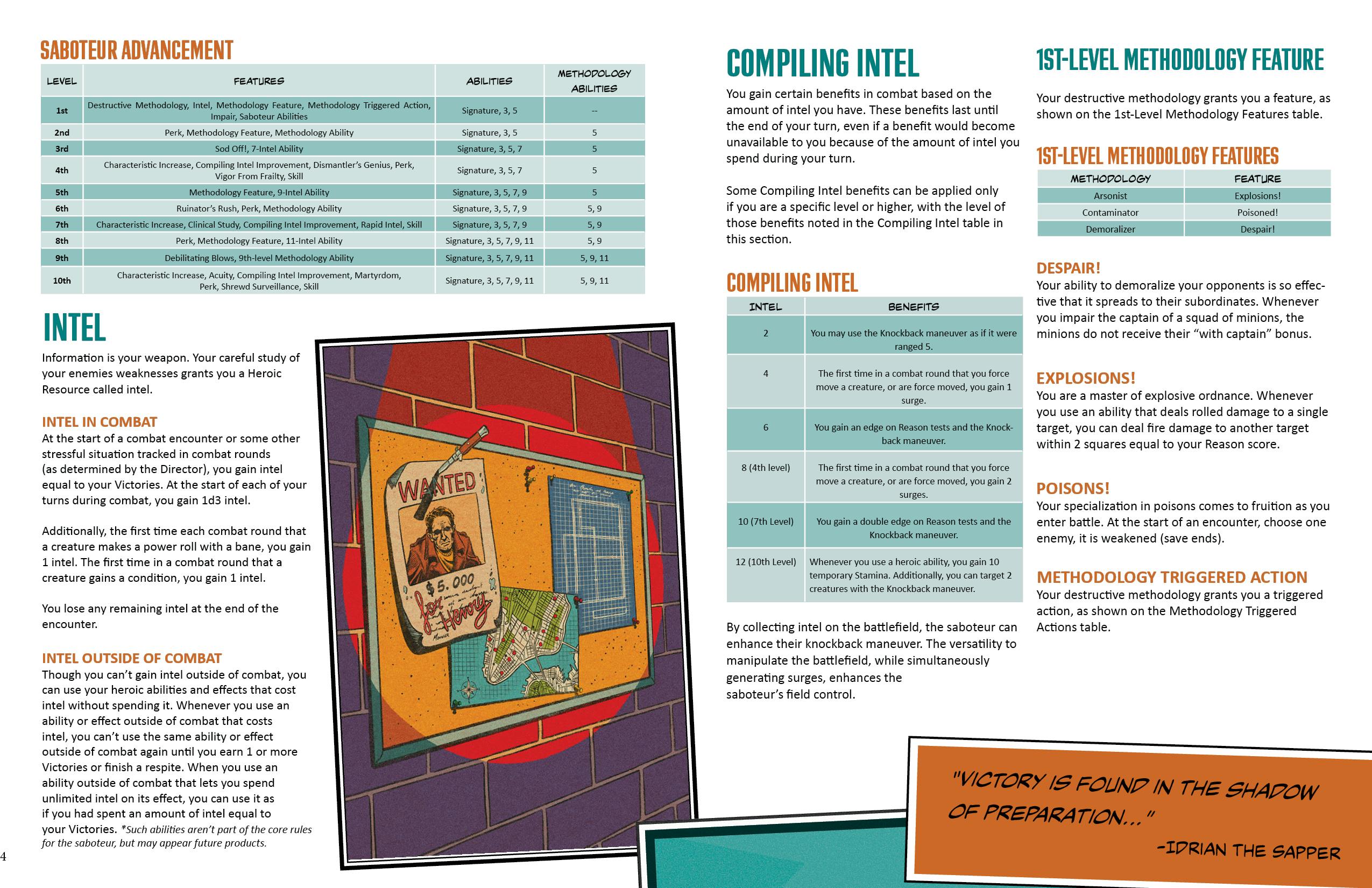 Playtest Material The playtest material for Sabotage! is feature complete and ready for testing. Playtesting will begin immediately after the close of this campaign and continue until the final PDF is ready to be sent out.