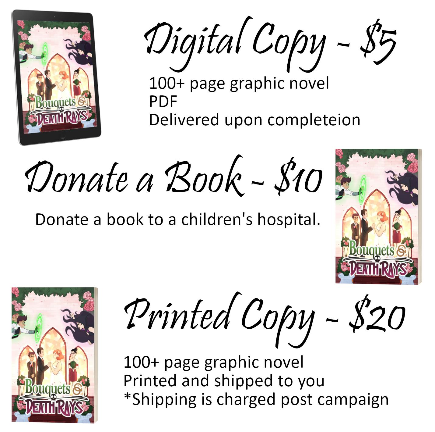 Bouquets & Death Rays is a 100+ page, full color graphic novel - written by Jordaan Arledge (Alex Priest, Woman in the Woods, A Howl) and Natalie Cooper (My Kingdom for a Panel), and illustrated by Melissa Capriglione (Oregano & Basil, Falconhyrste, S.P.I.R.I.T.).