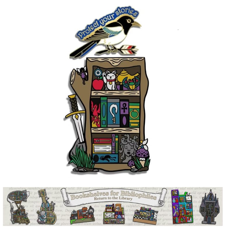 For the very final goal - if we double Spirits in the Woods - I'll come up with an all-new pin design which will be added to everyone's pledge for free. Right now, I'm playing with ideas for kelp, a shark, or (possibly hermit) crab. If you missed Spirits in the Woods and want to help push those stretch goals, previous designs will be available in the pledge manager - and I just activated a new add-on for those designs to be added at a discount ($15, retails at $20).