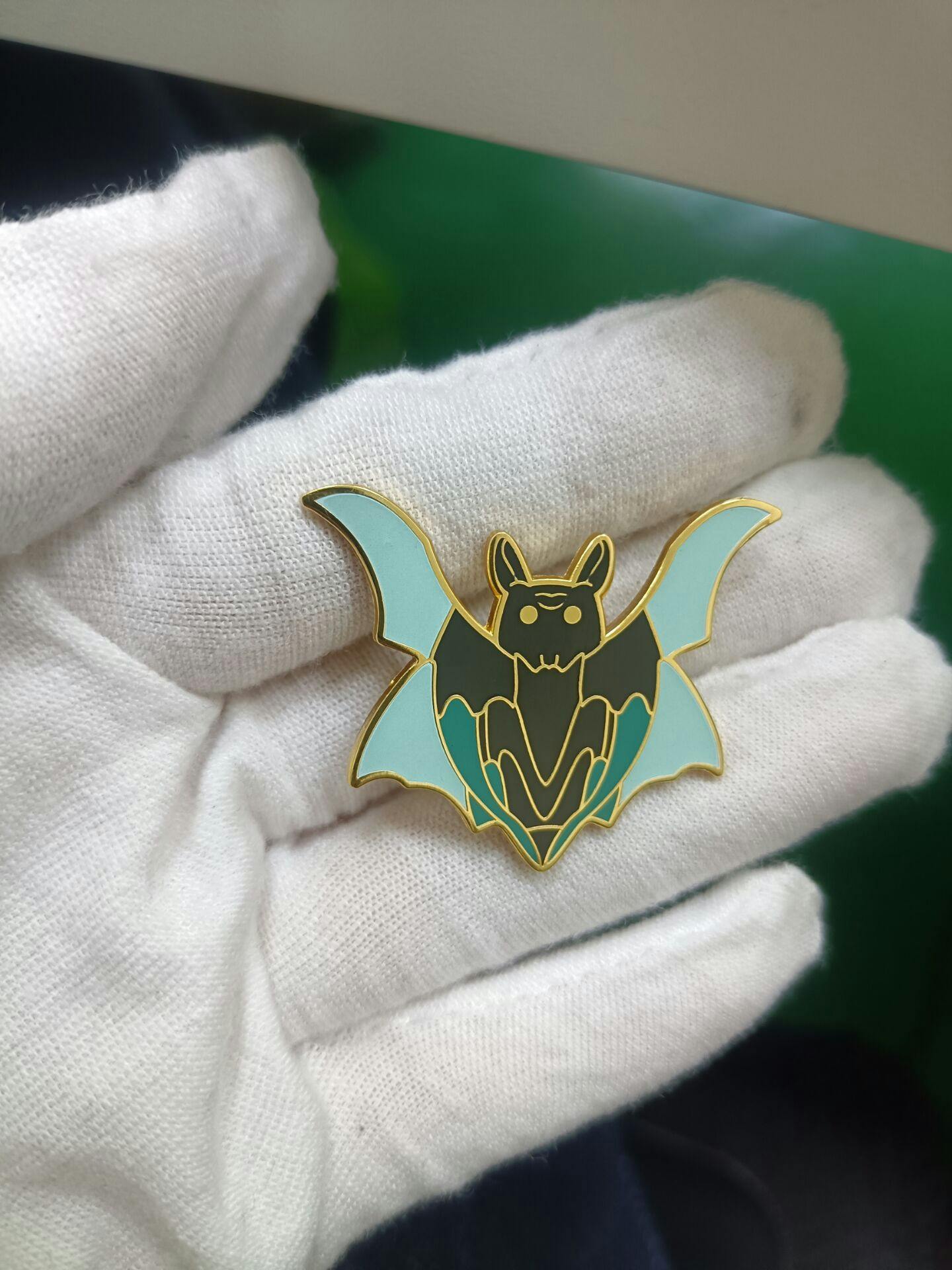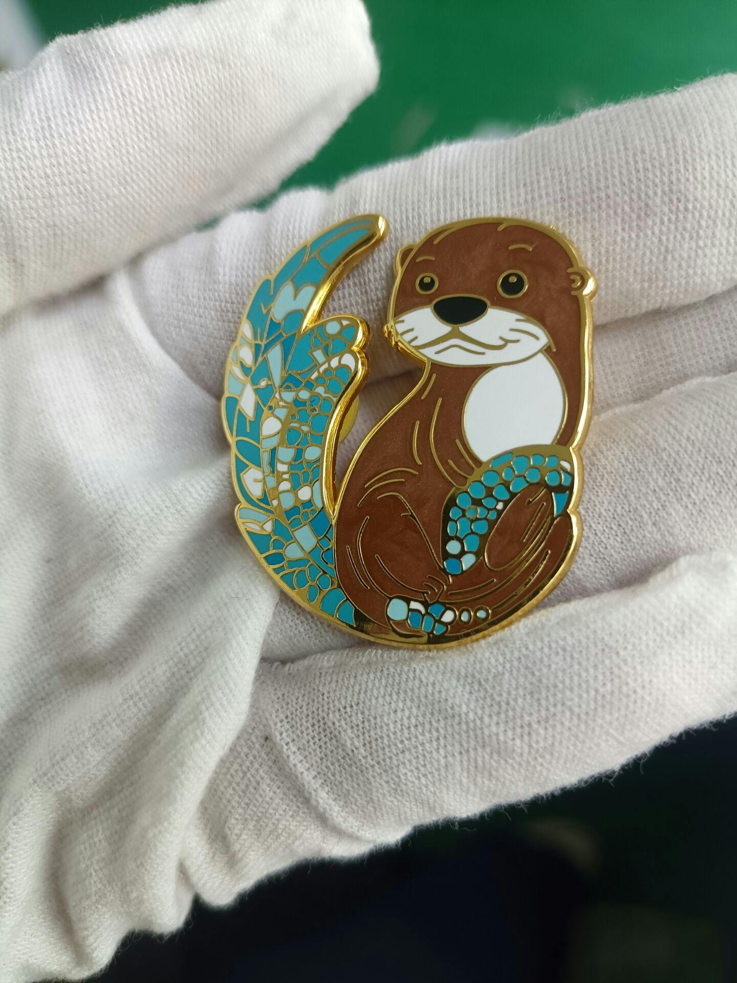 The bat, hummingbird, and otter pins are complete. I have a shipping number for the bat pins, and expect to see shipping for the other two shortly. You can see the transparent enamel on the hummingbird wings, and I'm so happy with how that turned out.