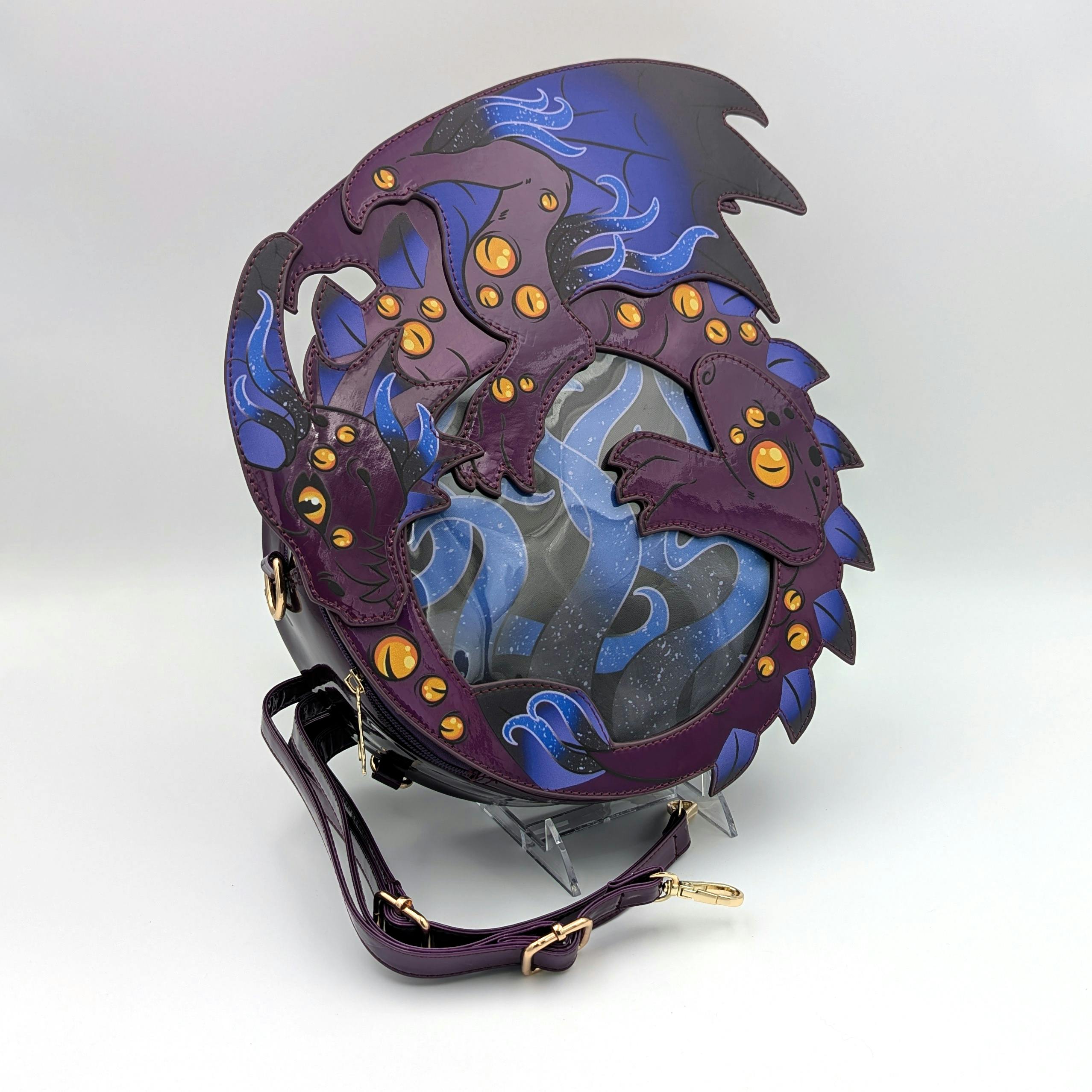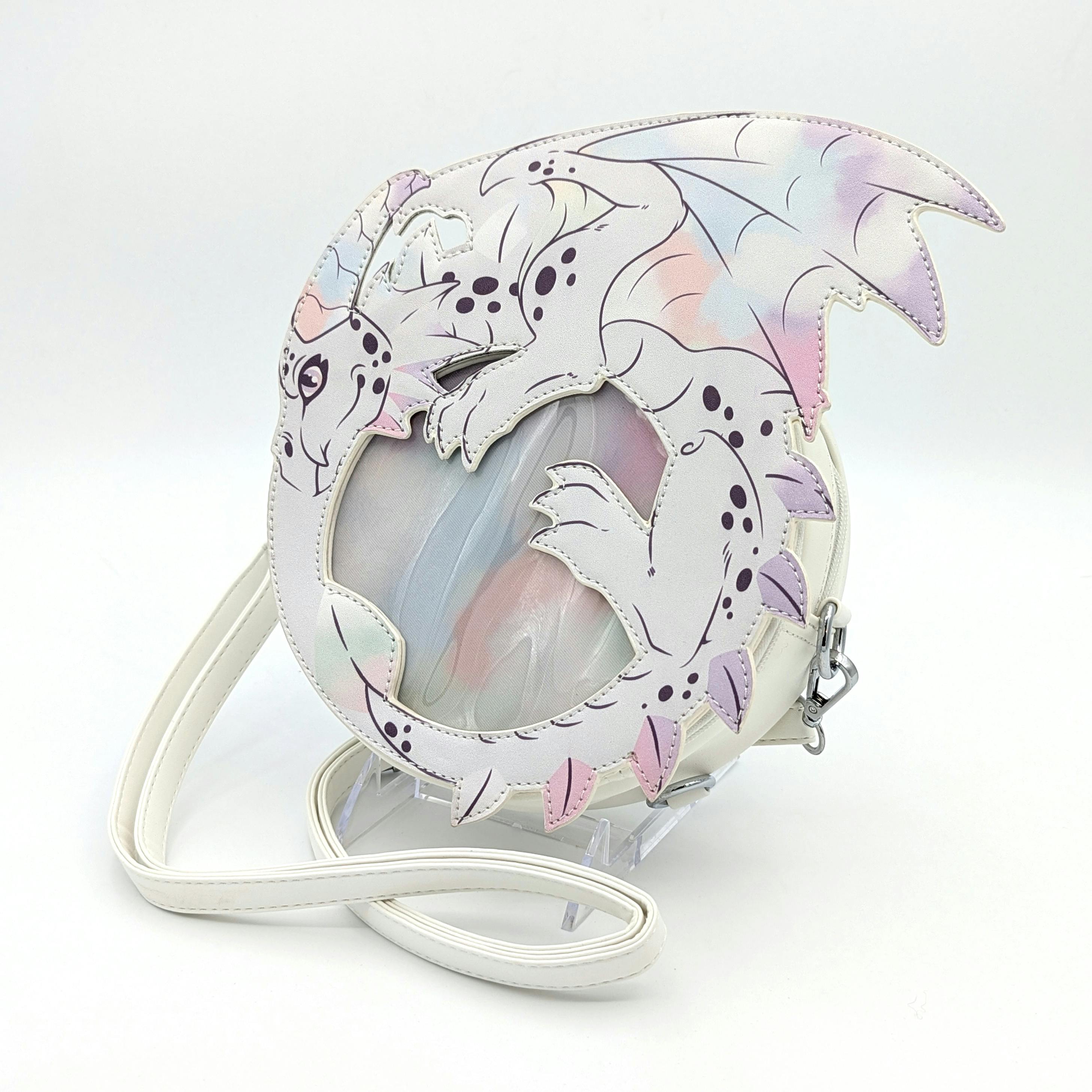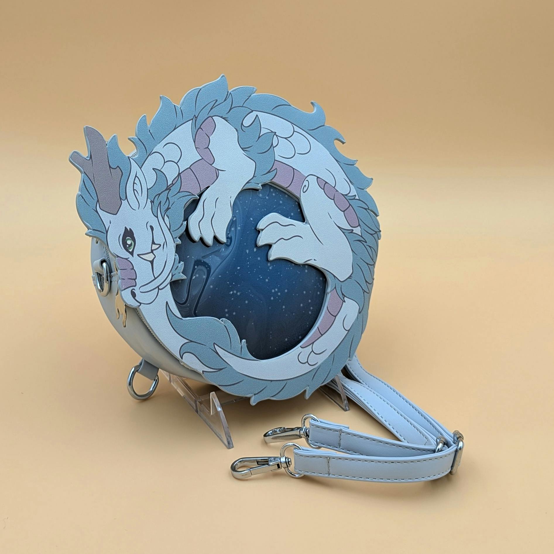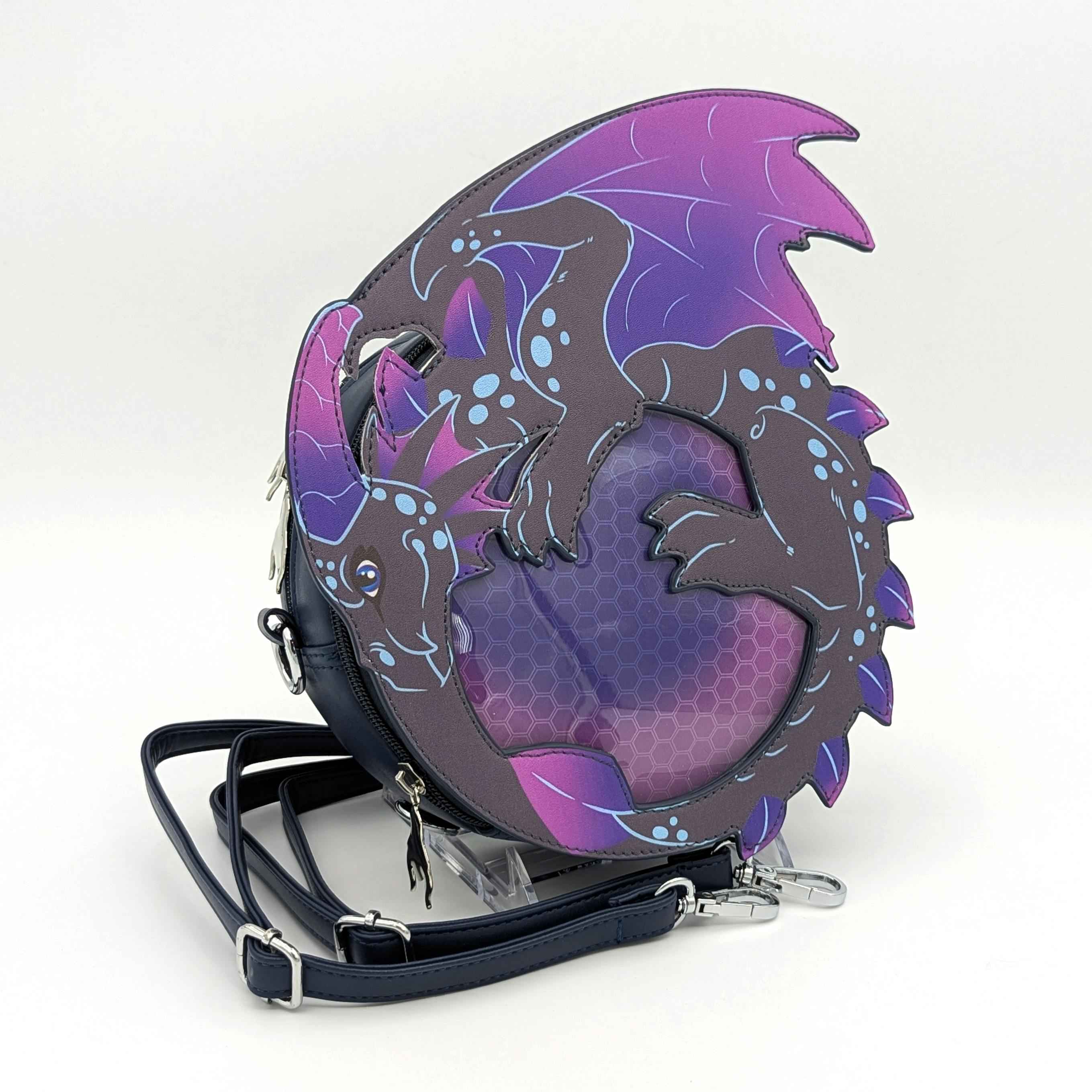 The Dragon Companion is a windowed bag series created by artist Straya Obscura! Carefully designed from the ground up to be the perfect addition to your outfits while also sporting an adorable scaled friend to protect your trinkets and necessary items!