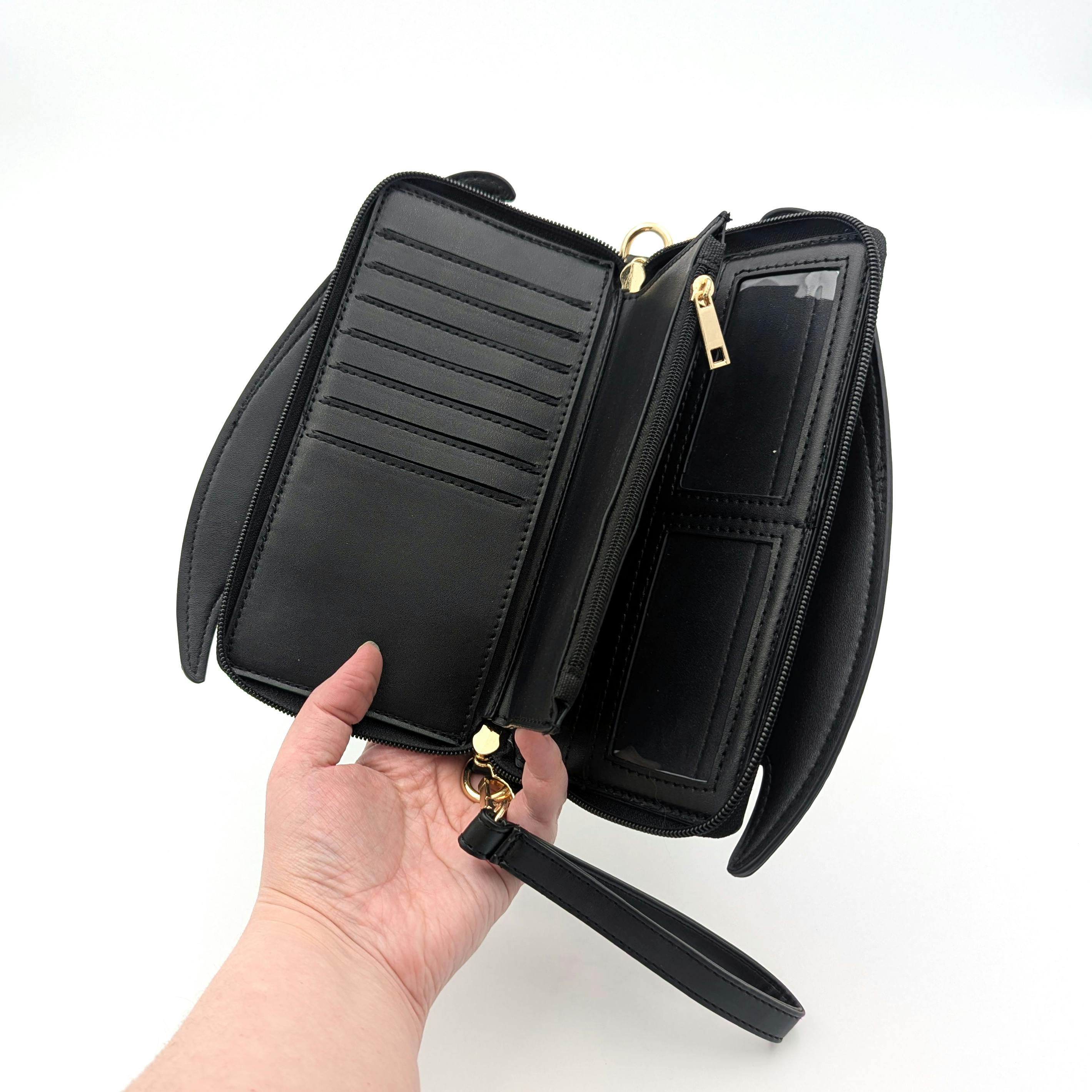 There is also the Wing Wallet, a folding style wallet that has many slots for your cards, monies and IDs, all zipped up and wrapped by two large dragon wings! They also include two metal hoops on the outside and a clip on wrist strap.