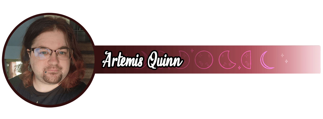 Artemis Quinn (he/they) is also known as Vamp or VampireAntihero in most of his social media interactions. He is nonbinary, and happily married to his husband. Originally from the city of Poughkeepsie, New York, he currently lives in Wisconsin. Artemis is a fulltime freelance artist, and his work is a comic semi-realistic style and, much like their writing, their personal work is largely focused in dark fantasy, horror, and supernatural elements; shedding light on topics such as mental health, LGBTQIA+ experiences, and isolation. He also acts in a local theatre troupe on a volunteer basis. It is their goal to work on stories that can bring meaningful change to the world.