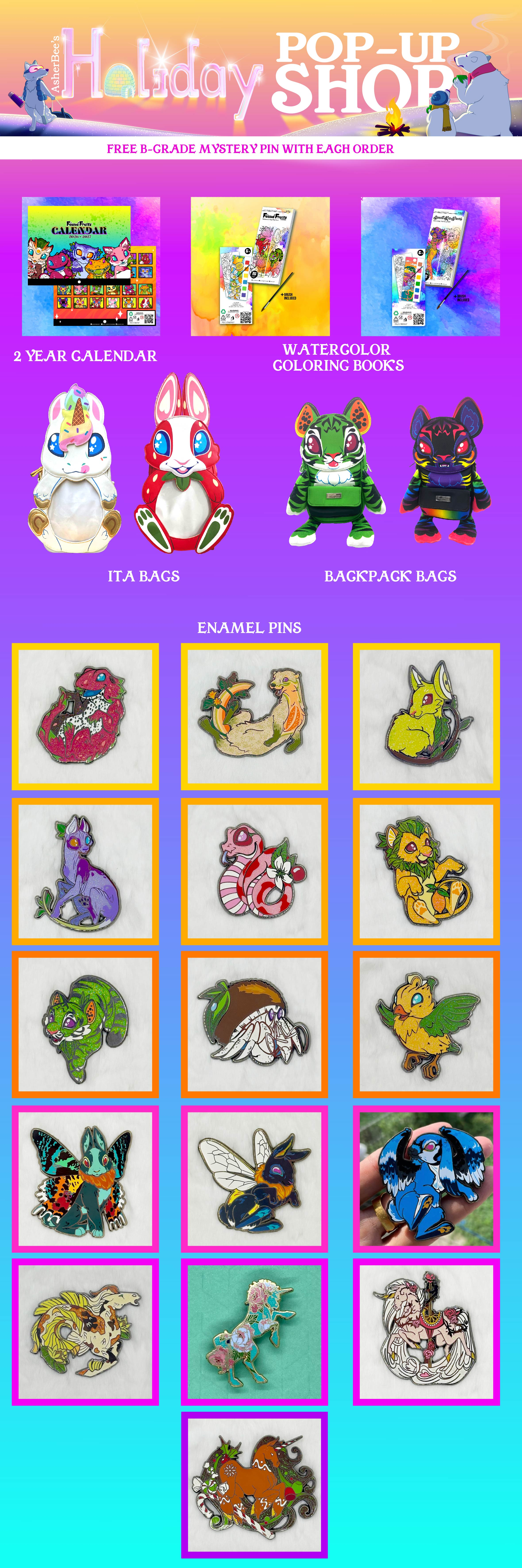 For the friends and family in your life, who love original fantasy artwork, pins, stationary, and bags. There are plenty to go around.