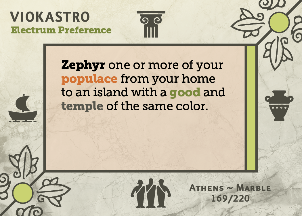 One of the most crucial things we've been aiming for with the edits to Aegean Sea over the past couple years is making it easier for first-time players to play (also something I've worked hard on for One Deck Galaxy!). The concept of an island's preference, and the fact that it differs from the color of the card itself, is tricky. Once you get it, it's simple, but between the streams and other first-time plays I've witnessed on TTS over the past few weeks, we realized we needed to beef up the up-front info a bit.