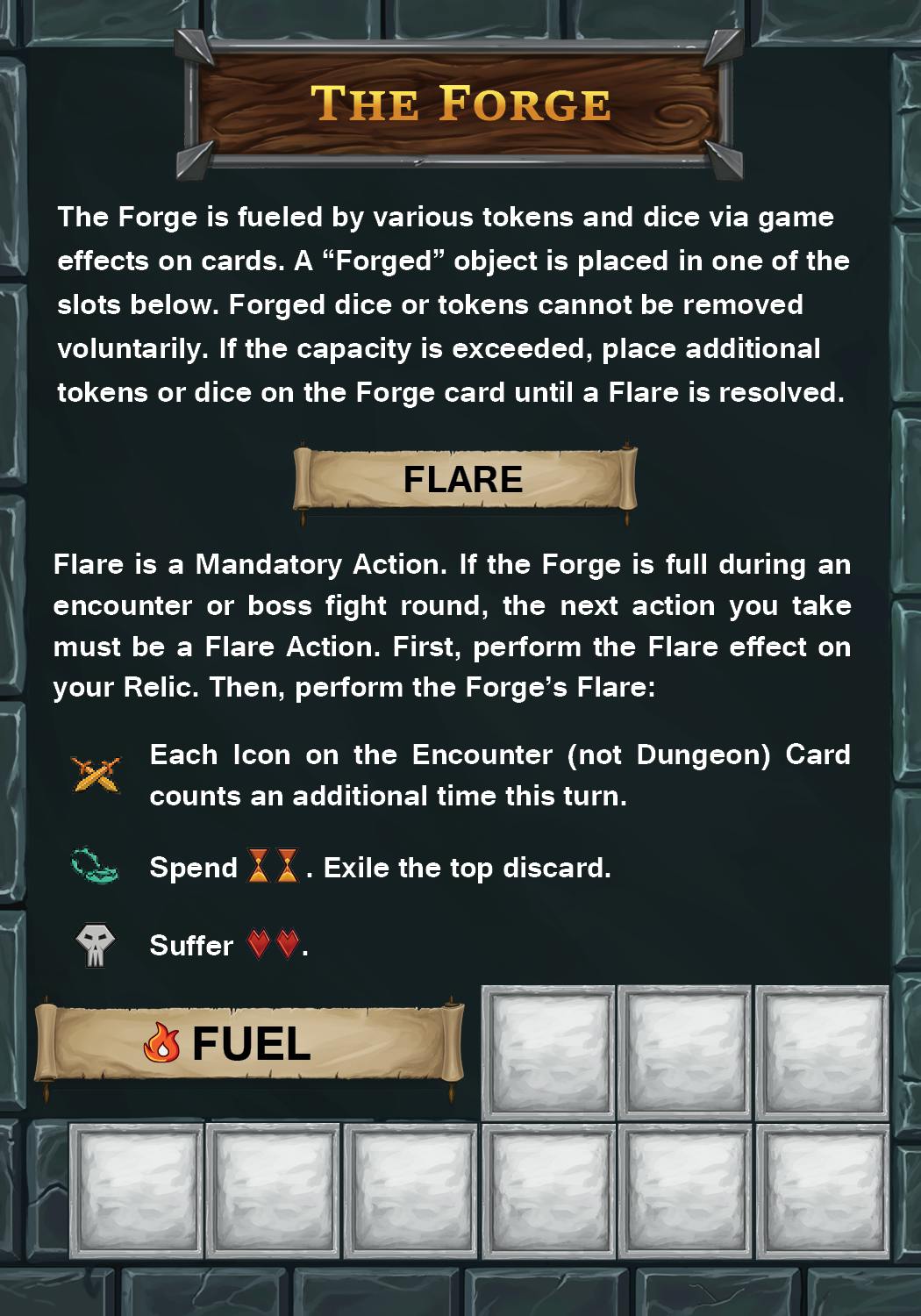 The Forge card (still temporary graphic design as we continue to balance) now lists its flare effects (in addition to your relic):