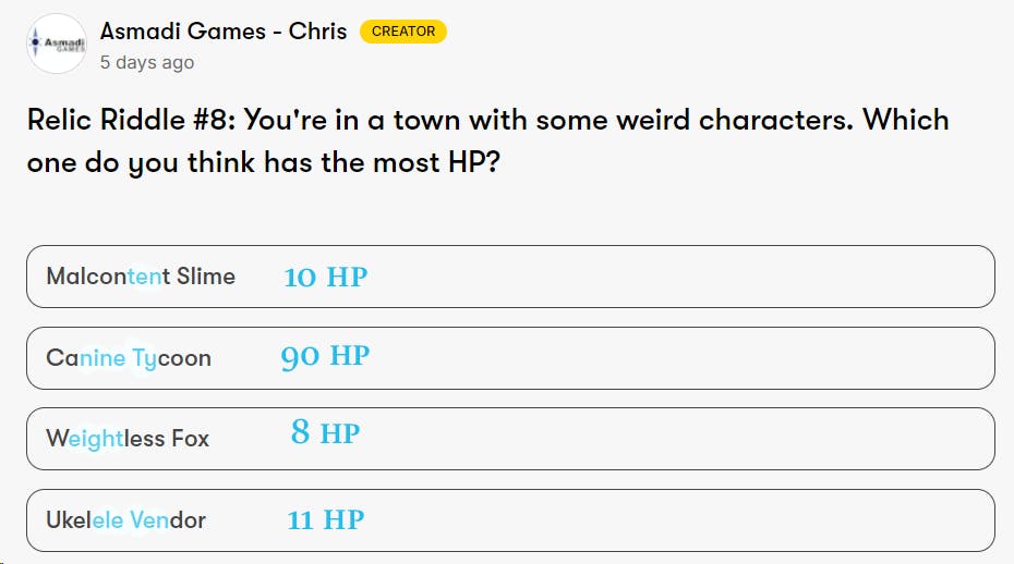 Each of the characters was hiding a number inside, reflecting their total HP. At a glance, if you didn't see the TY in tycoon, you might have thought he only had nine HP, but he is much stronger than that!