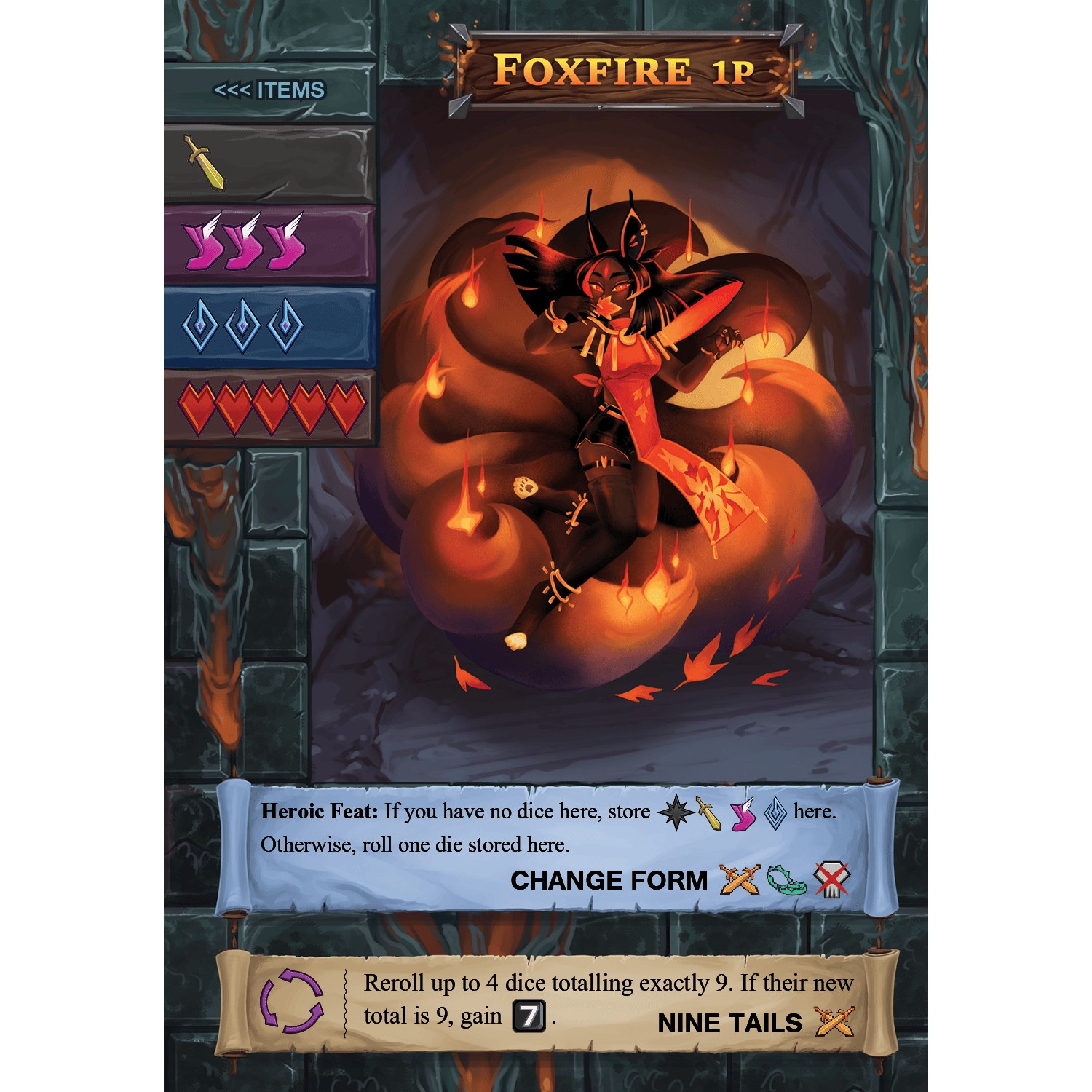 She is our latest promo hero, and will be included in every copy of the Abyssal Trove (or the Vault, which includes the Trove). As our crossover promotion, you can get a pin of her in fox-form if you back both our campaign and theirs: