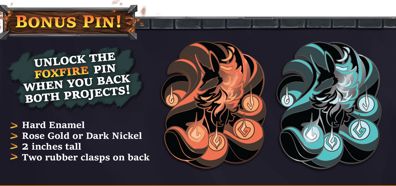 Back each campaign for $15 to receive a free pin! Get *both* pins if you back for $150 combined.